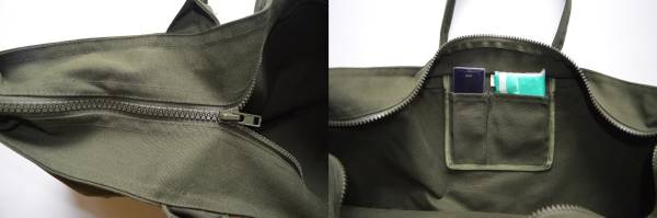 内側にポケット付き、ジッパー付き