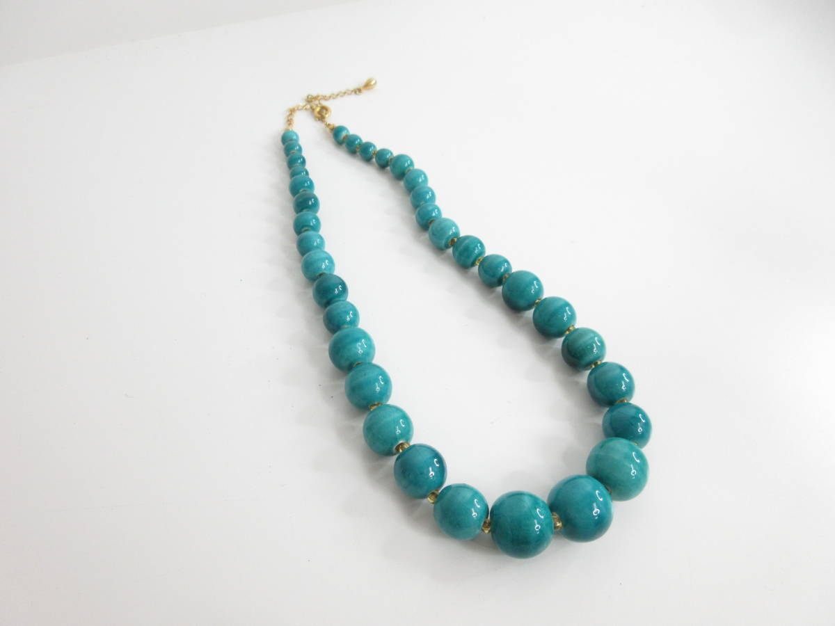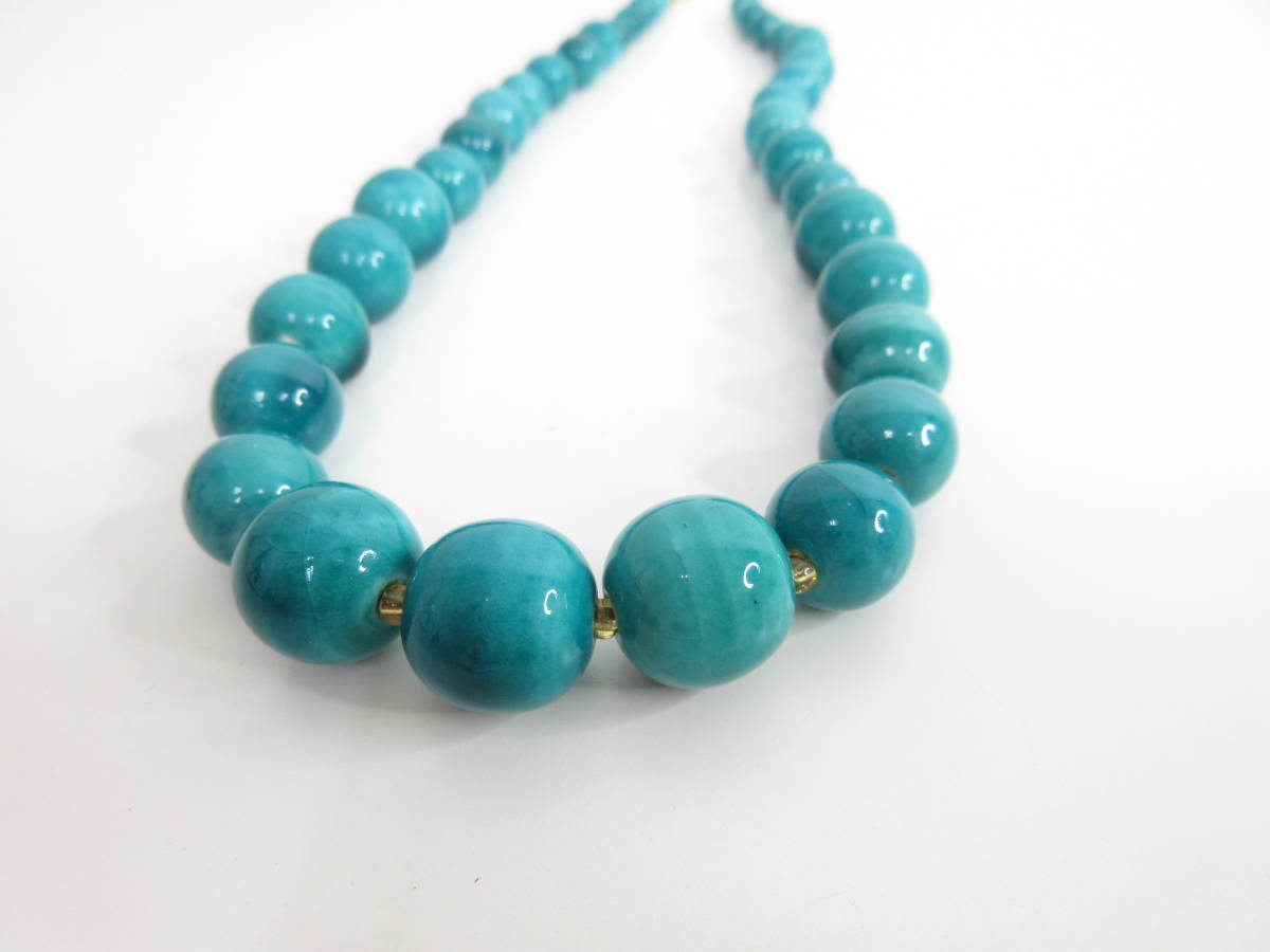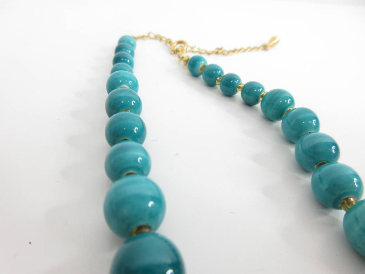 極美品◆九谷焼 九谷泉八 ネックレス ブルー 35連玉 伝統 工芸品 ペンダント グラデーション 40センチ 調整可 管理2003 R-1