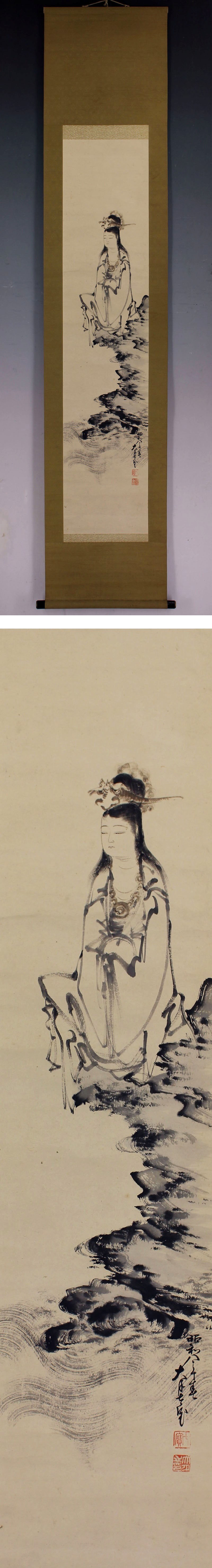 | №1903145 希少【真作】大本教 大月七宝【岩上観音】◆紙本◆合箱◆掛軸 | |