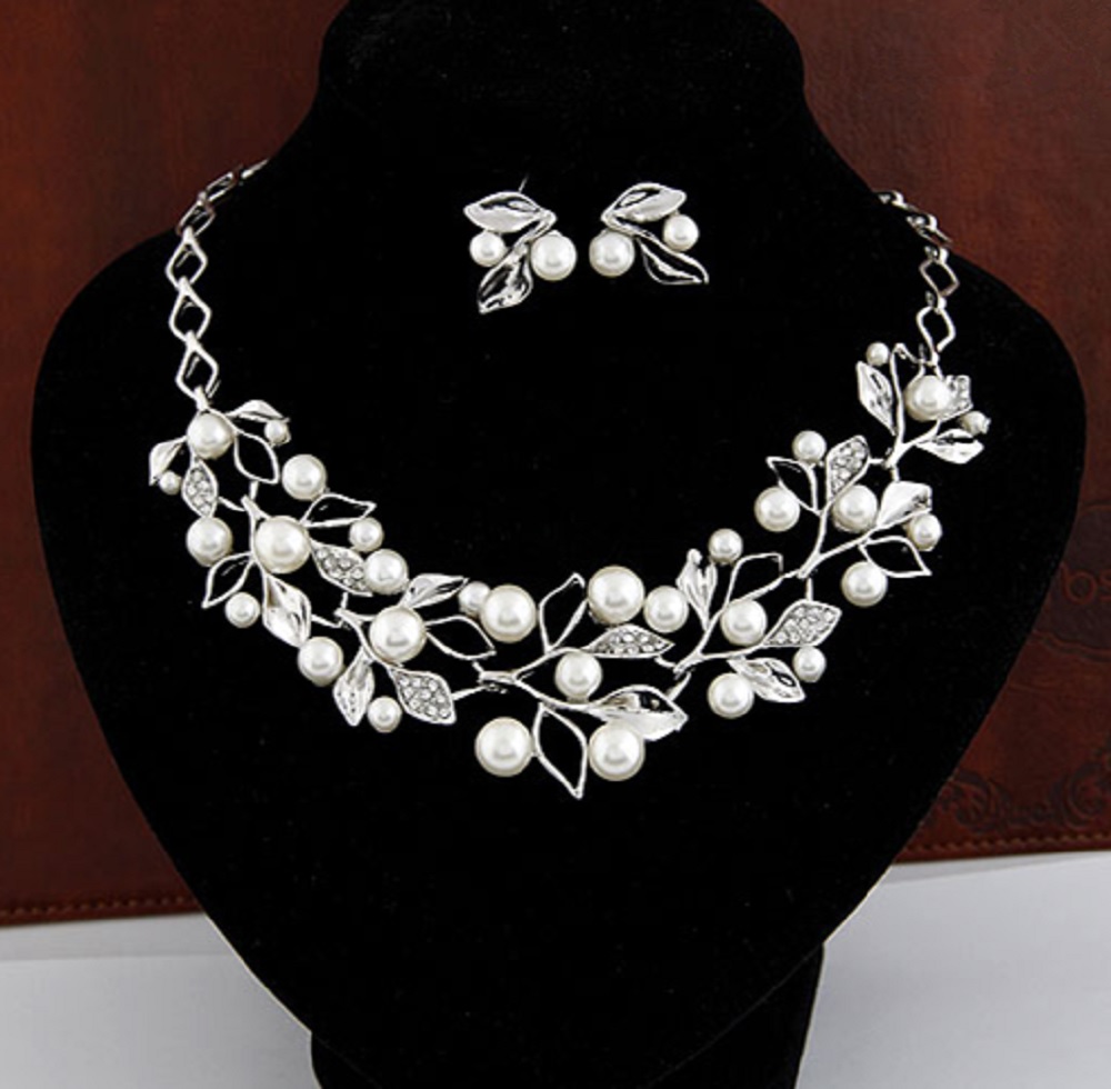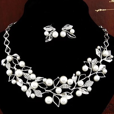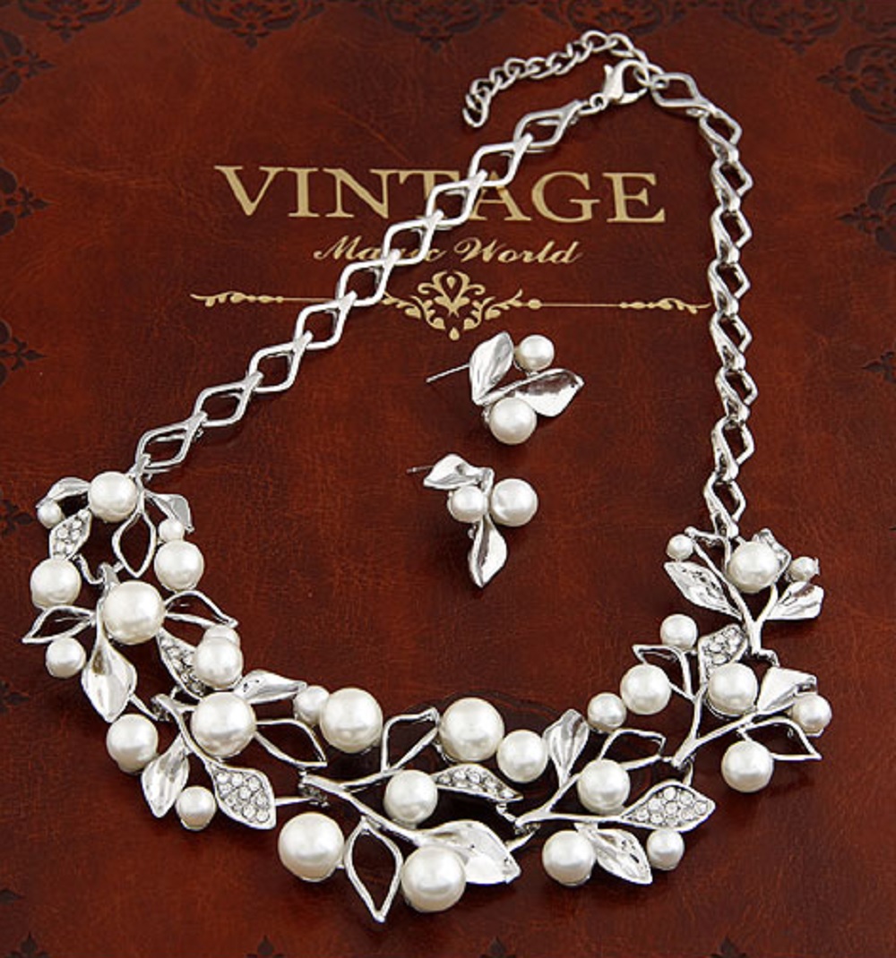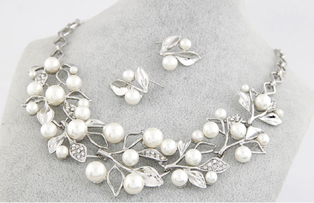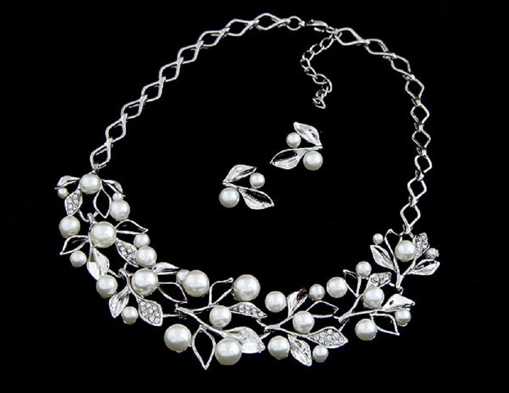 激安 セール 人気 かわいい おしゃれ ネックレス ピアス セット パール リーフ 透かし柄 豪華 ゴージャス シルバー 銀 結婚式 パーティー