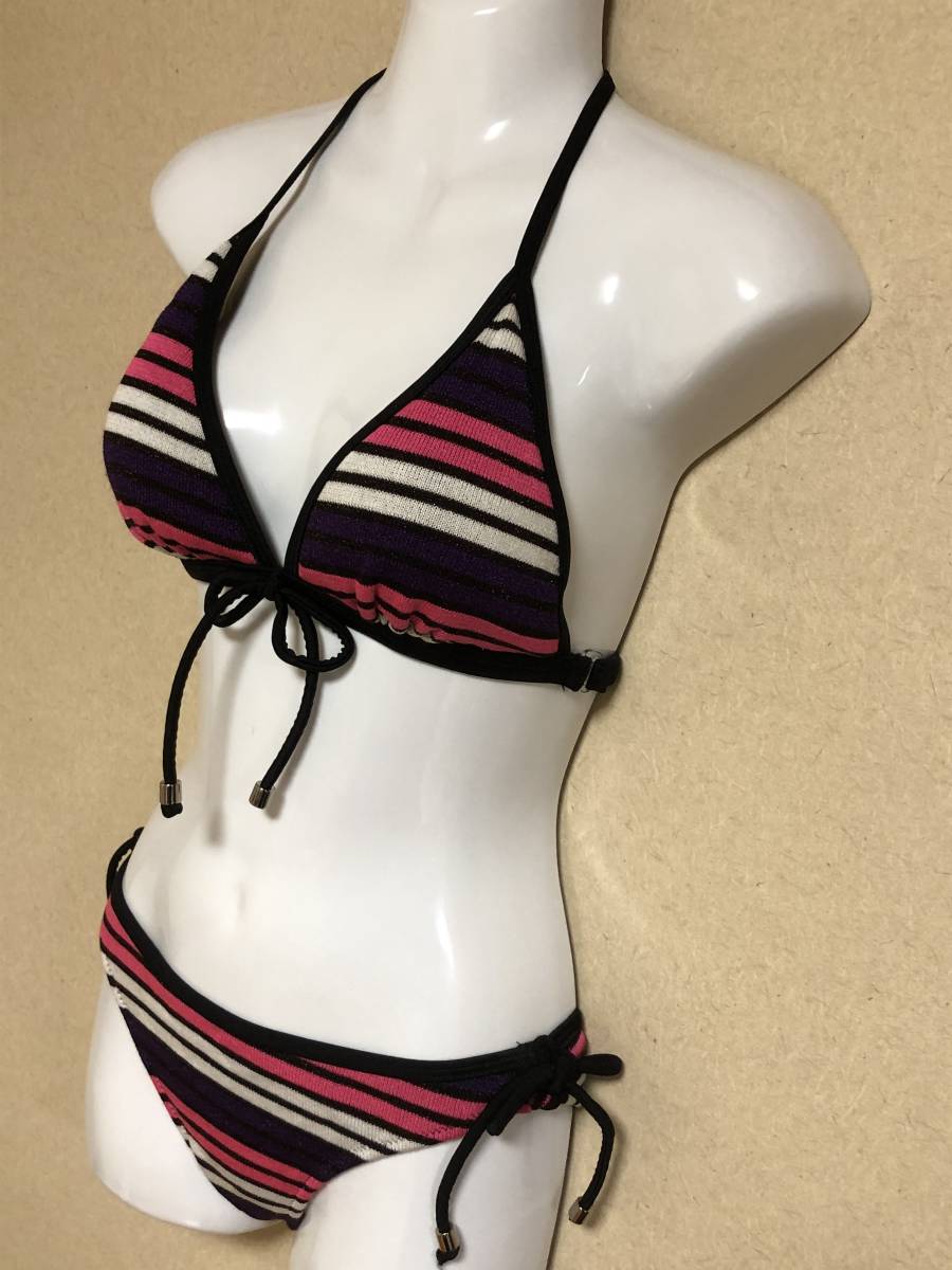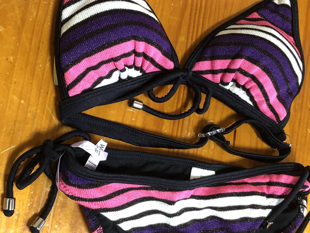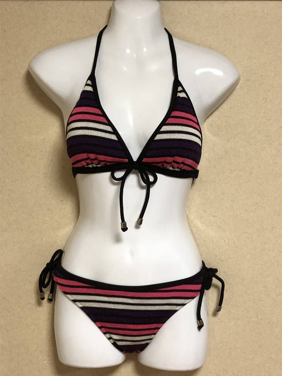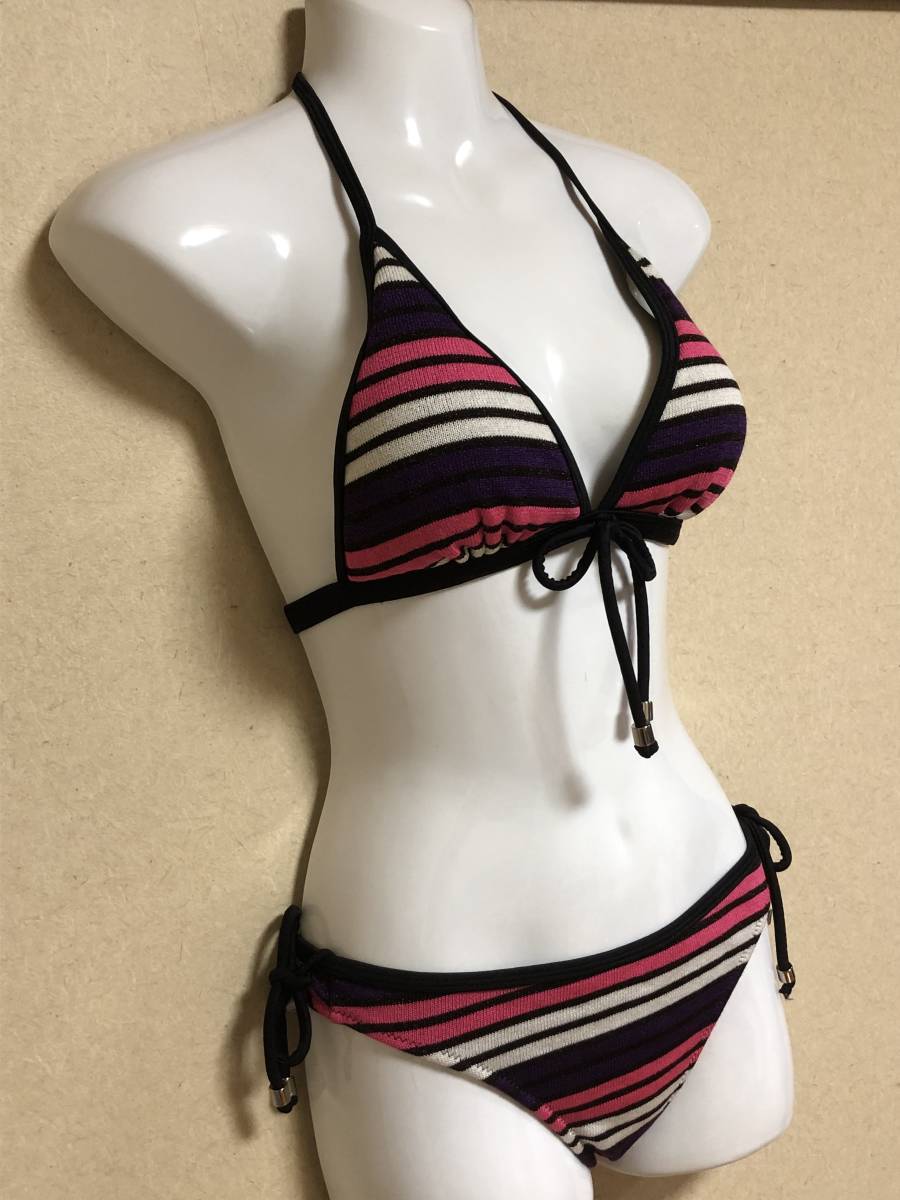 水着★三角ビキニ★ストライプ★ニットタイプ★9M★ピンク×パープル
