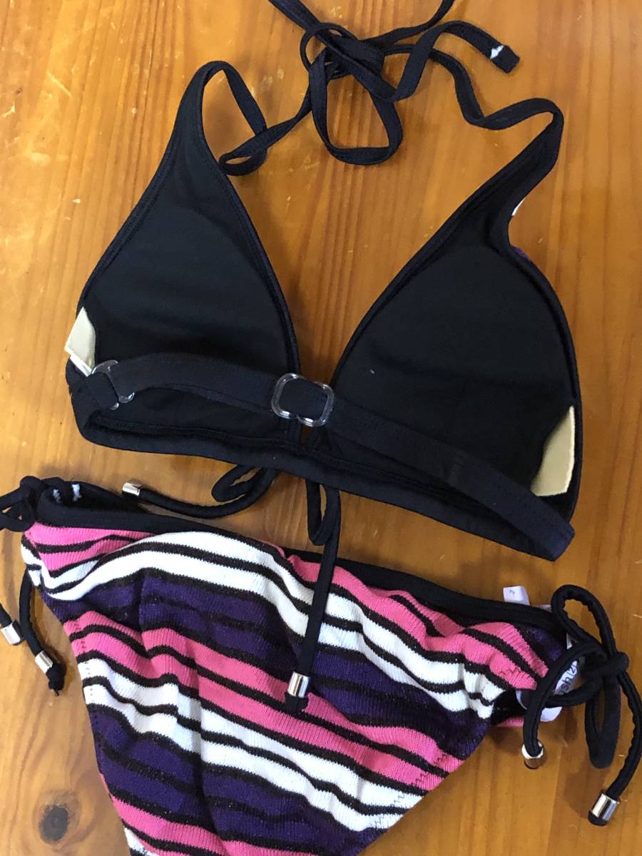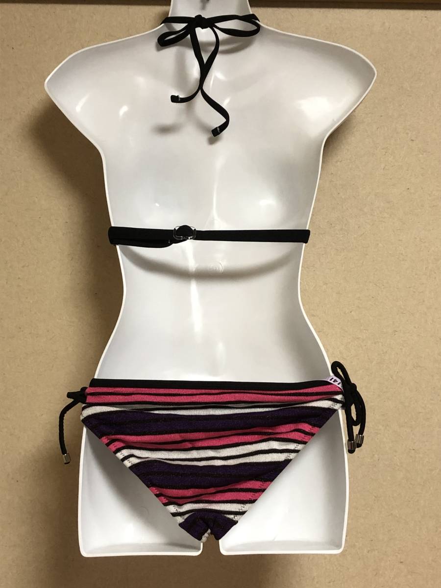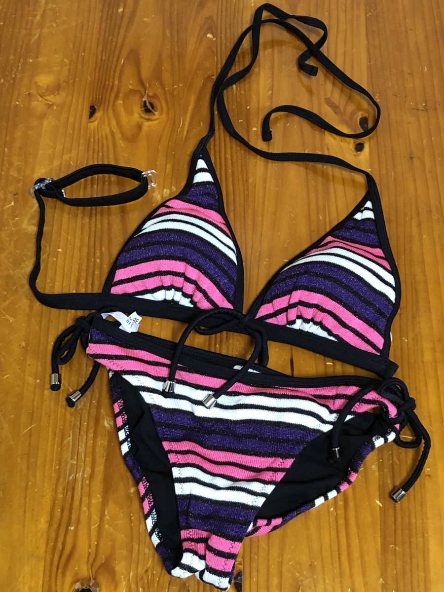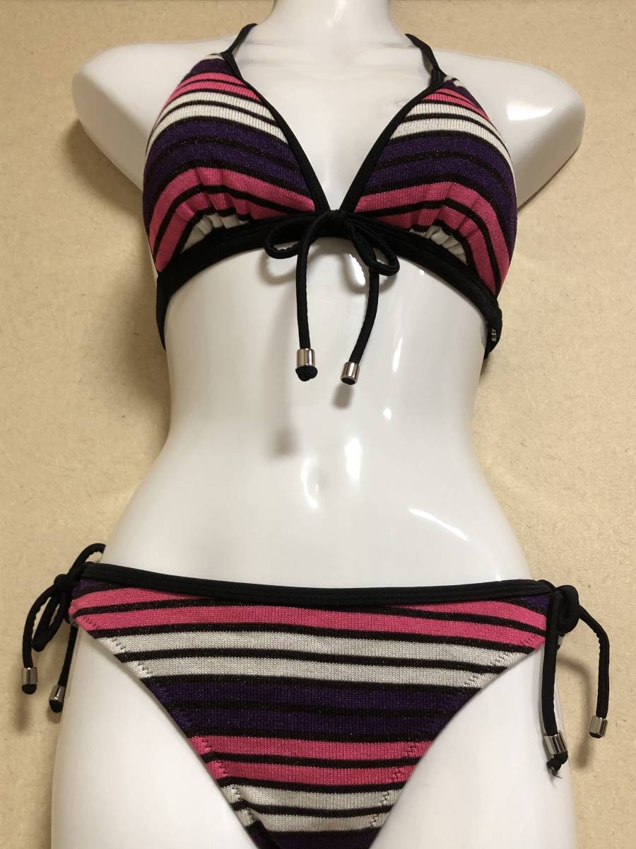 水着★三角ビキニ★ストライプ★ニットタイプ★9M★ピンク×パープル