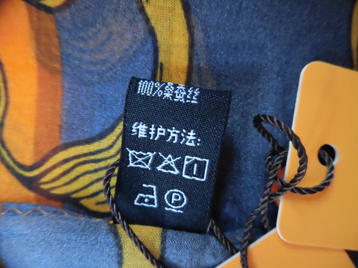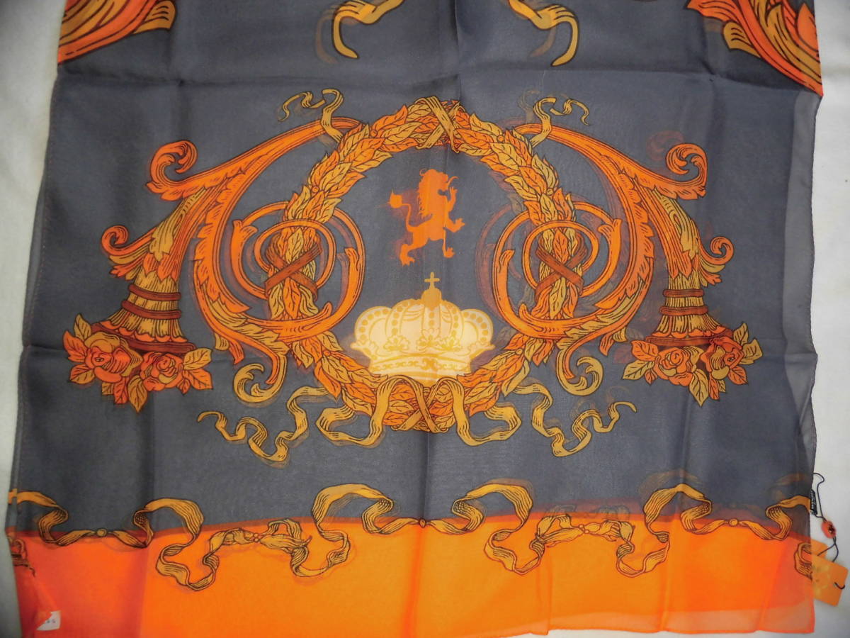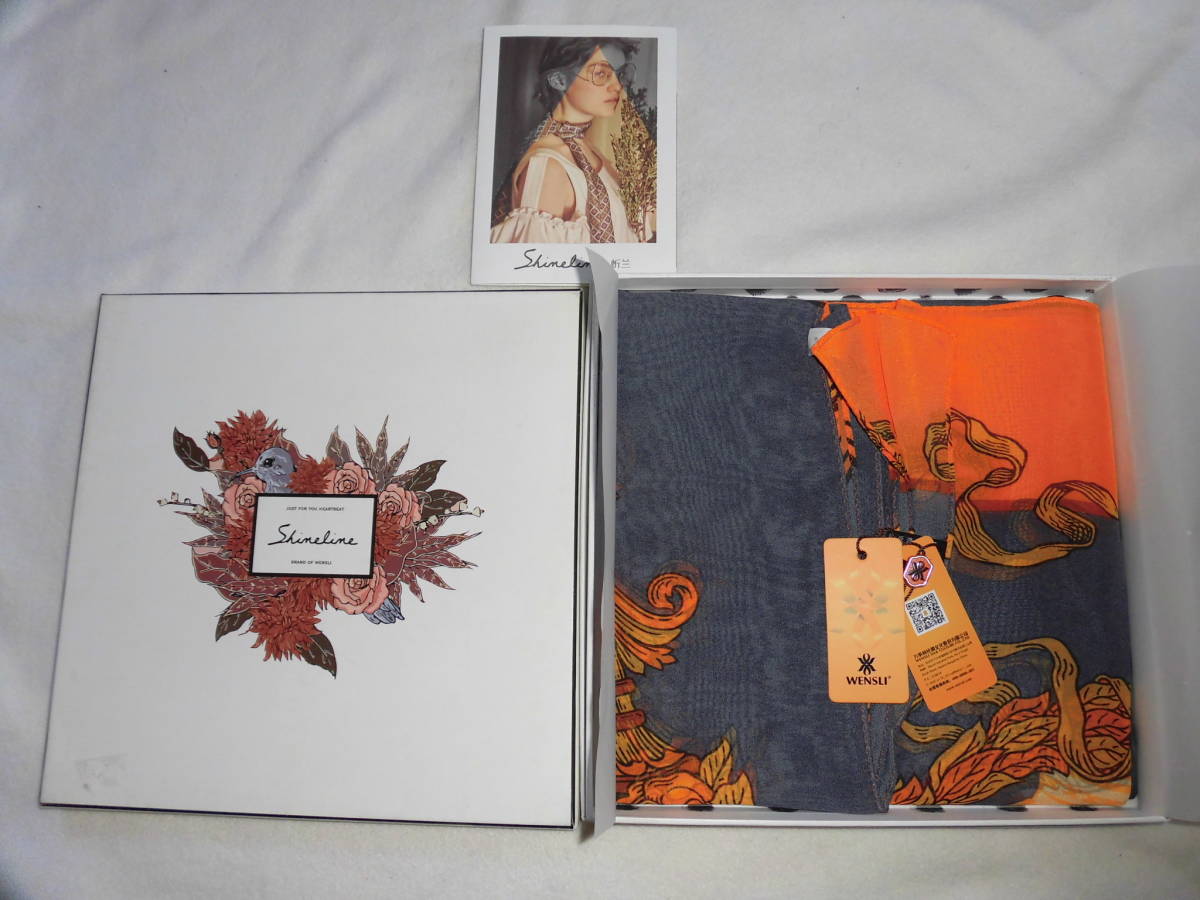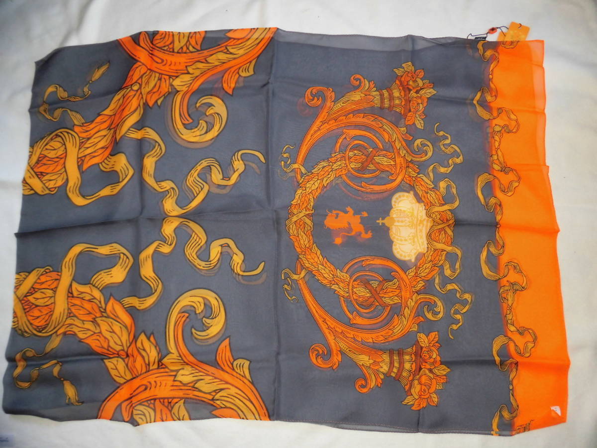 新品★Shineline★シルクシフォン スカーフ シルク100% スカーフ 、グレー×オレンジ