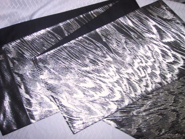 京都西陣 じゅらく の 6通柄袋帯 新品未仕立て品、絹100%金属糸等使用  くろ色地にぎん色のの生地に 銀なみ、なみ、、、、