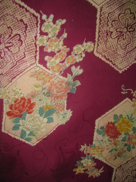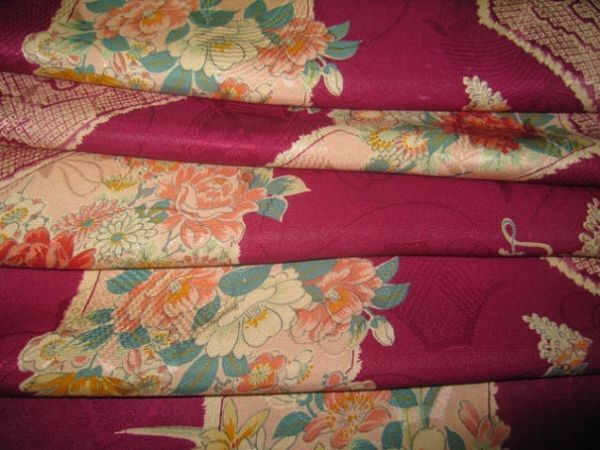 2-13★薔薇*牡丹*梅*立花*菊*藤*綸子*羽織*古布はぎれ★市松人形/吊るし雛