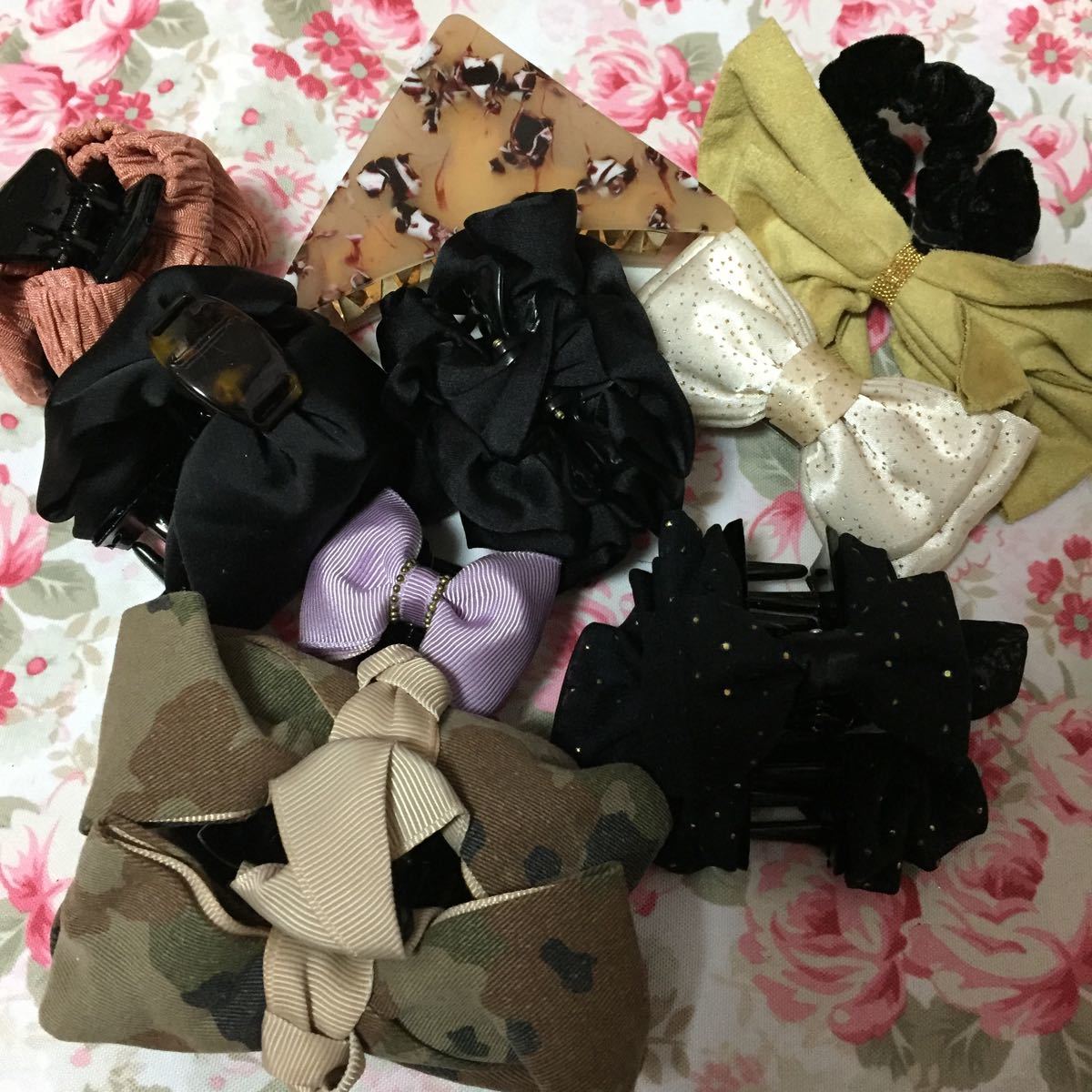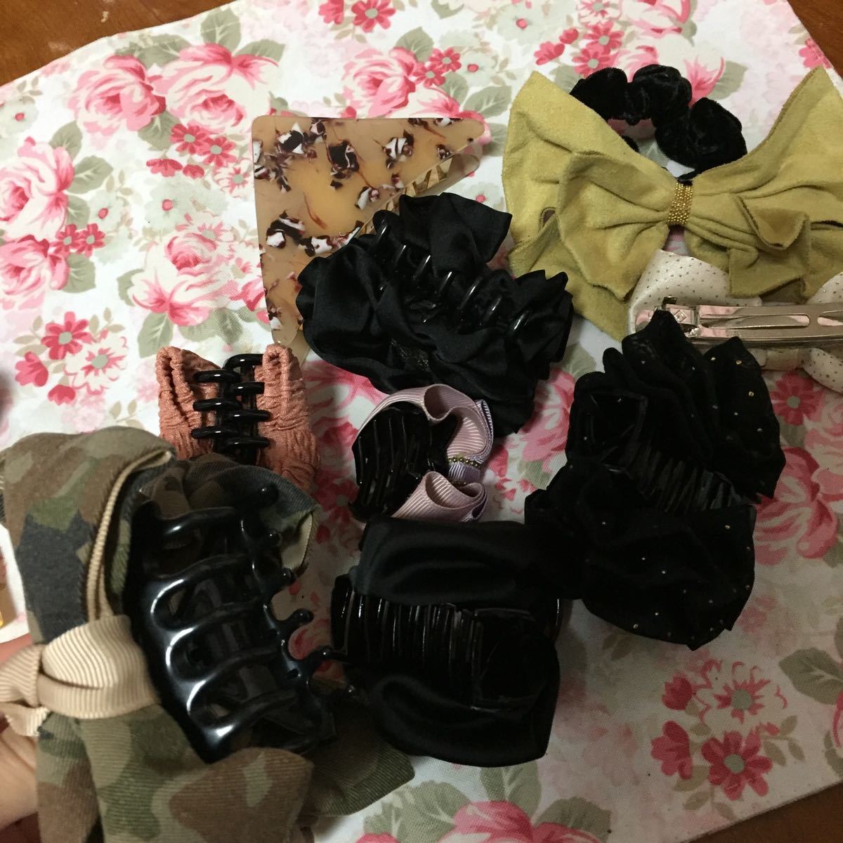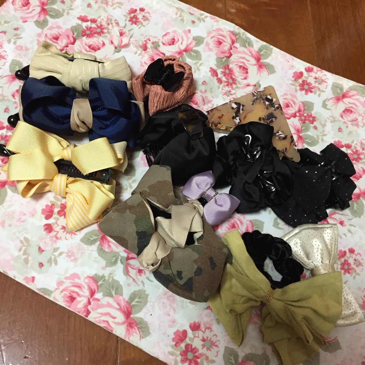 ヘアアクセサリーまとめてセット バナナクリップ3個 バンスクリップ7個 バレッタ シュシュ 迷彩柄 ストライプ ドット