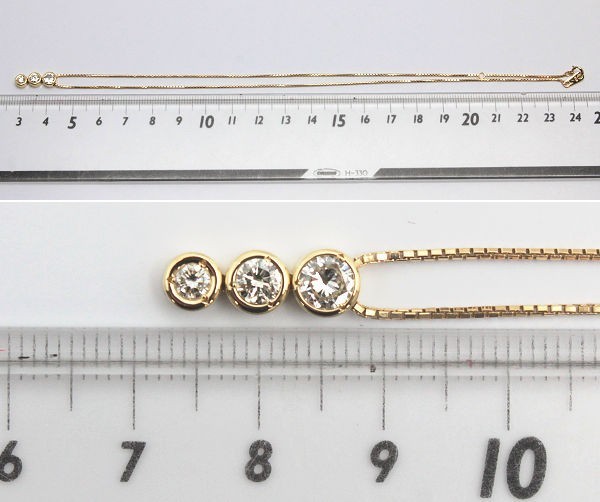 コメント | ベネチアンチェーンに3連ダイヤモンドがオシャレなネックレスです★ ダイヤモンドの輝きが美しく、首元をエレガントに飾ってくれます♪ K18という素材を使っておりますので、地金積立にもオススメです★ 中古品の為細かな擦れキズがございますが、装着時に目立つような大きなキズはございません。 この機会に是非いかがでしょうか? |