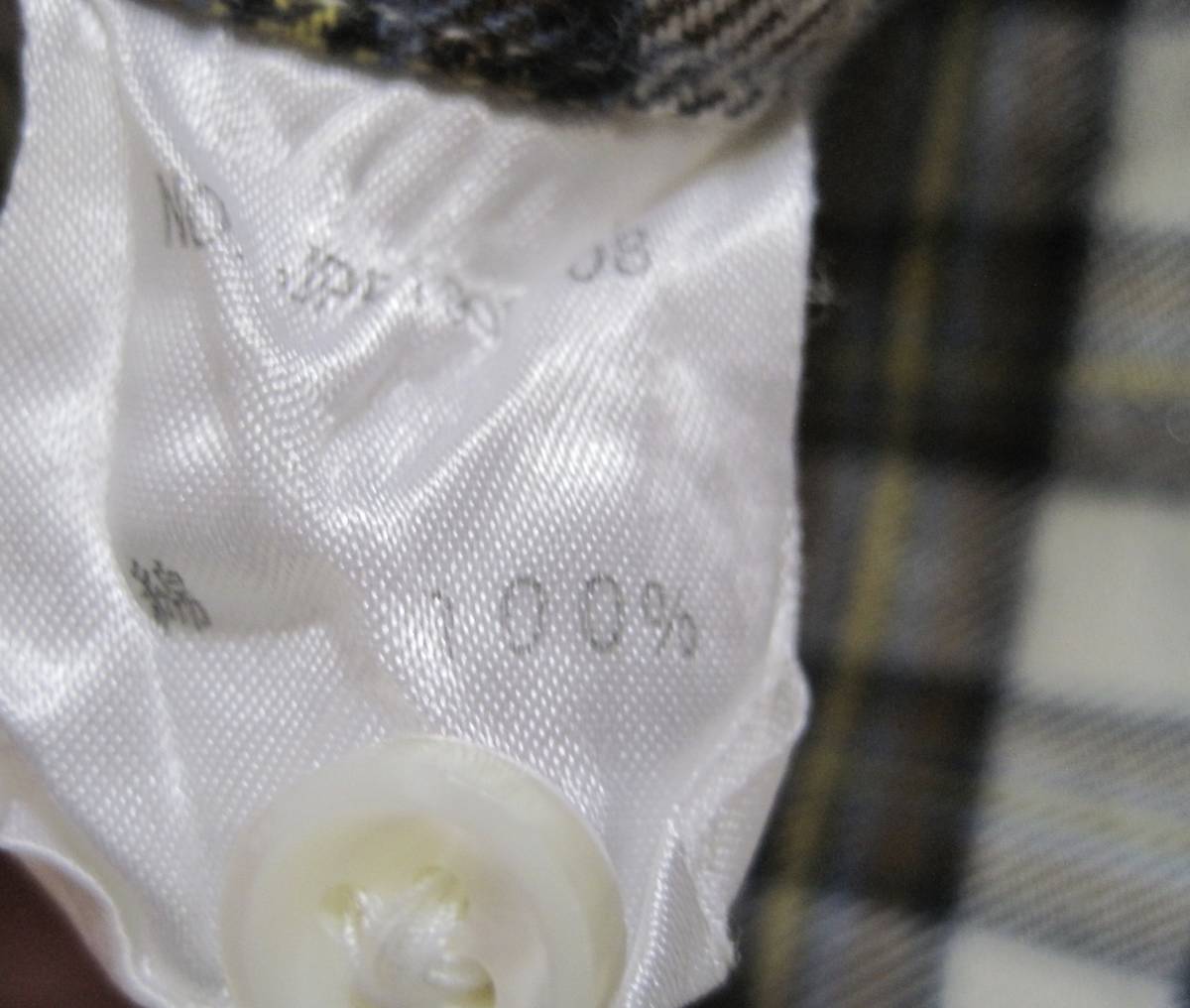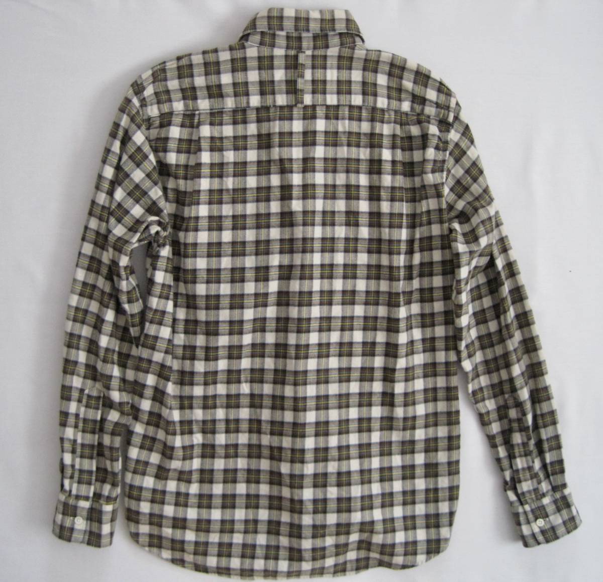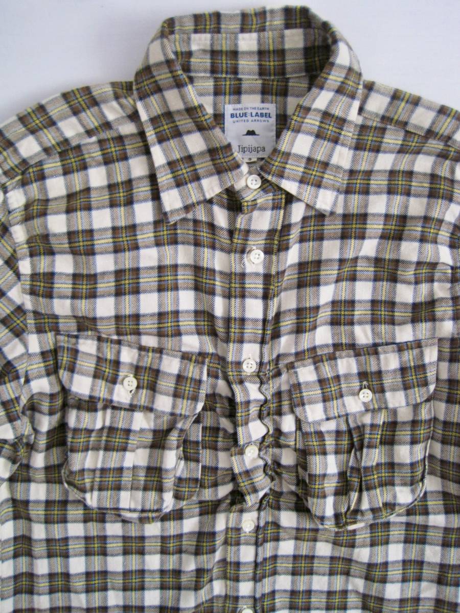 ブルーレーベル×ヒピハパ フランネルチェックシャツ。フロントボタン部分がギャザーになっています。サイズ2。