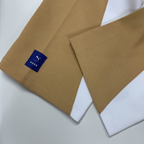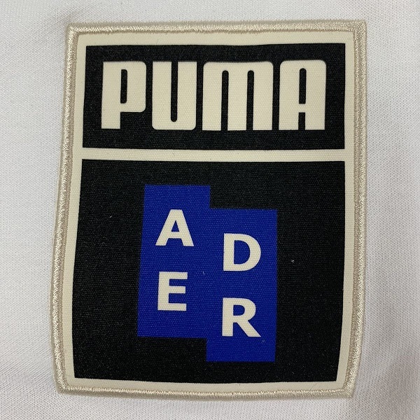 ・左ももにデザインされたPUMAのワードマークとADERのロゴ