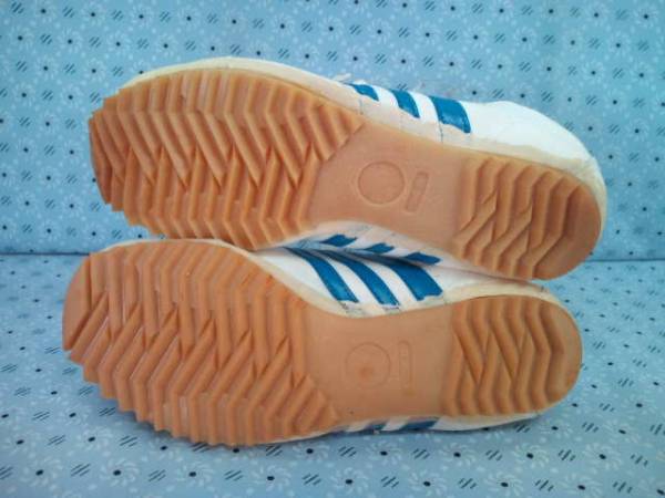 昭和60年代に製造されたシューズの為、訳ありの部分は、写真で御覧の様に経年劣化による黄ばみ&接着剤の黄ばみが顕著に見られます。