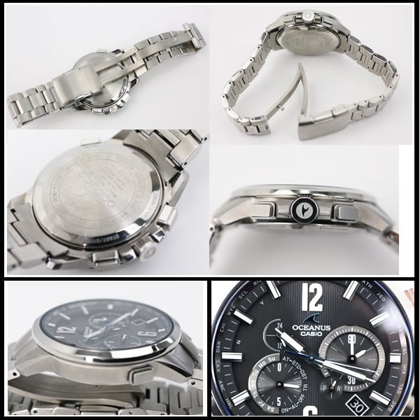 | その他商品説明 | 先進の技術力が世界から称賛される“カシオ”より、タフソーラーを備えたモデル『オシアナス』をご紹介します。チタンならではの独特な質感に、ブラックダイヤルの組み合わせがとてもクールです。電子リューズスイッチとマルチモーターを備えスムーズな表示切替えを可能にし、多機能を感覚的に操作出来ます。都会的でスポーティーなデザインも魅力の1つで、 カジュアルからフォーマルまでシーンを選ばず幅広くご愛用頂けます。この機会に是非ご検討下さい。 状態:ケース・バンド部分には、微細な傷が多少見られますが、気になるほどの傷は特にありません。 裏蓋部分に小傷が多数見られますが、着用時には隠れる部分なので、使用上見た目で気になる傷ではありません。ガラスには、気になる様な欠けや傷などはありません。ランクABにつき、自信を持ってお勧めします。 |