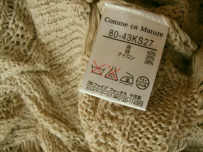 ザックリの編み目なので気づかない引っかけがあるかもしれませのでやや傷や汚れありとしていますが、無いように見えます。