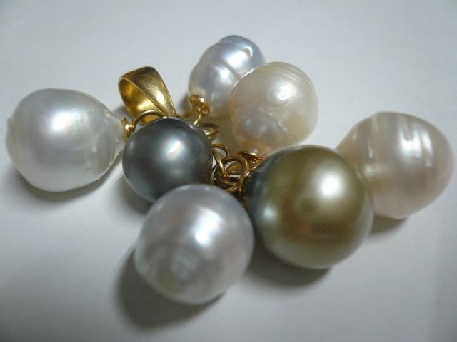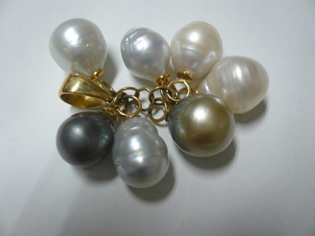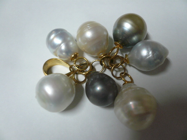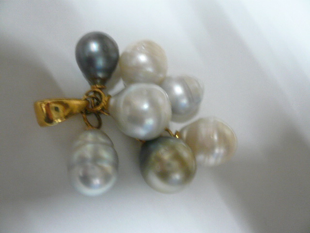 白蝶からグレイ・黒蝶真珠の楕円形の粒 K18の刻印あり トップはしっかり作られている