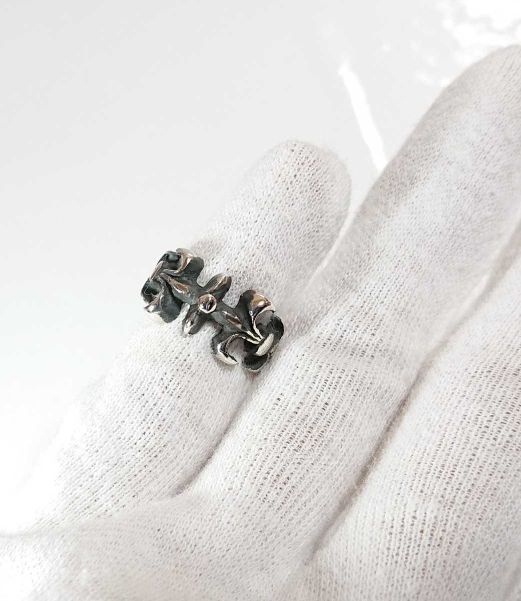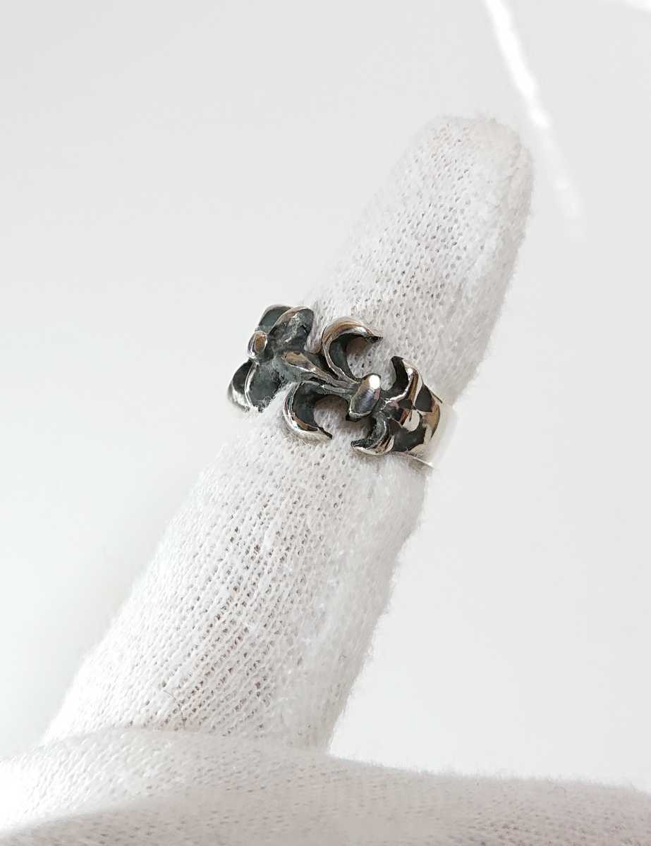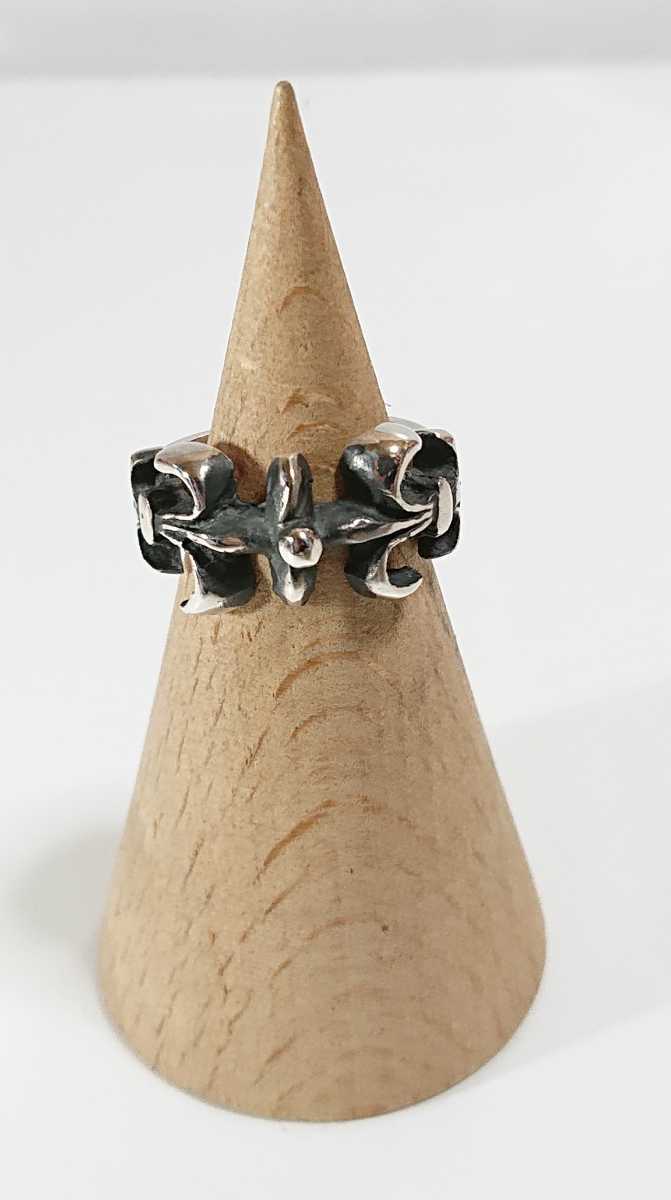 中心の十字架から百合の紋章を繋げたゴシック感のあるピンキーリングです☆