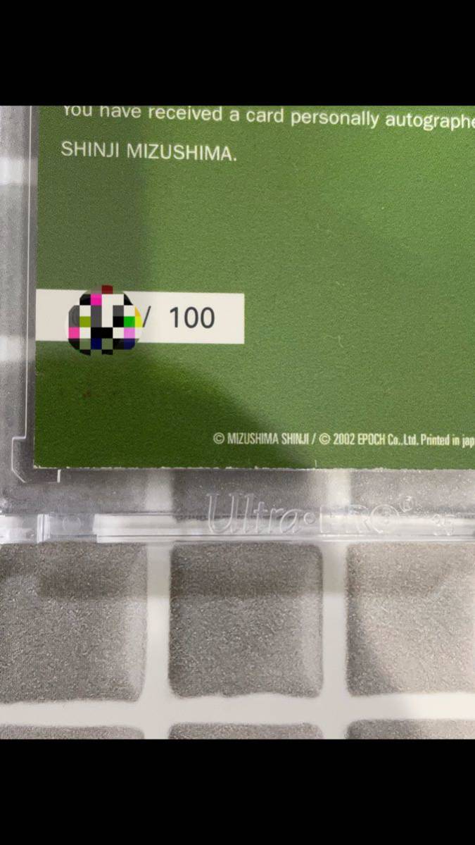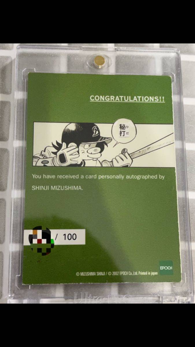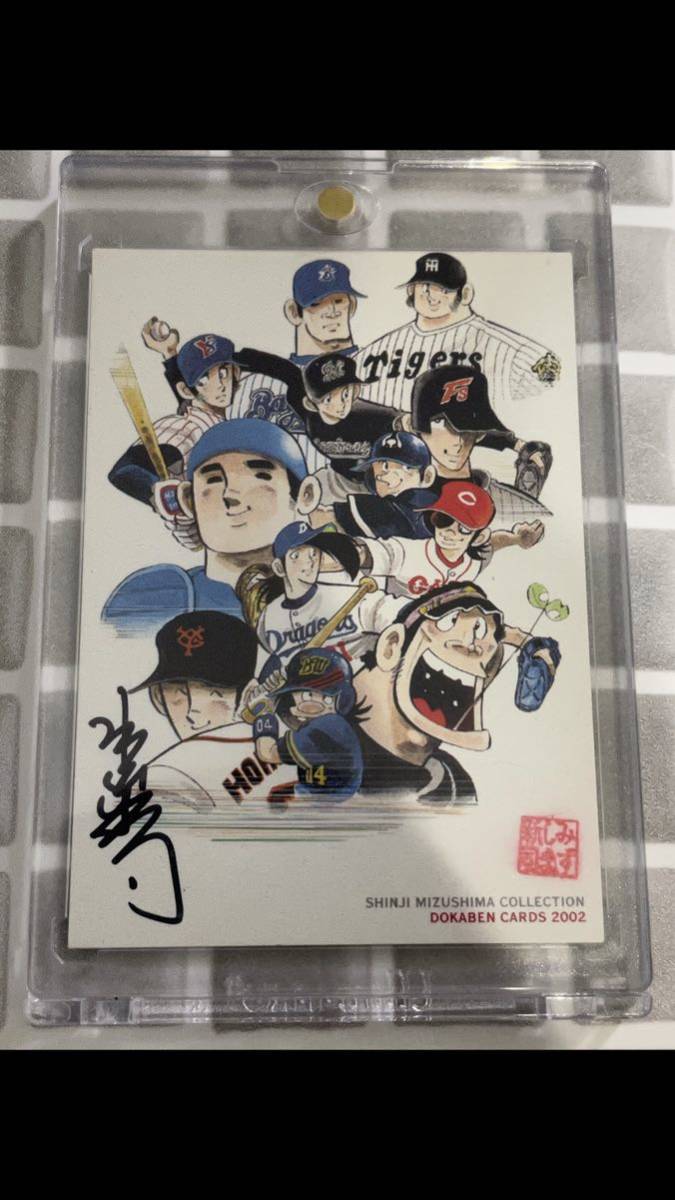 こちらのサインカードは2002年に販売されたドカベンカードの大当たりカードで印刷のイラストに、水島先生の直筆サインが書かれております。
