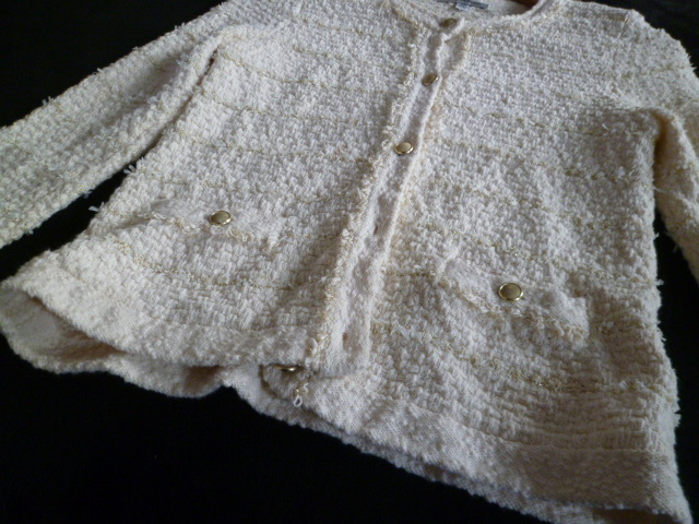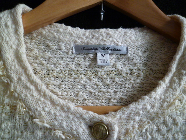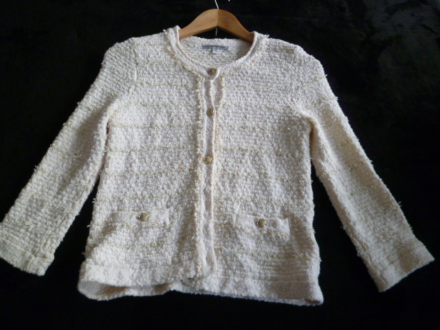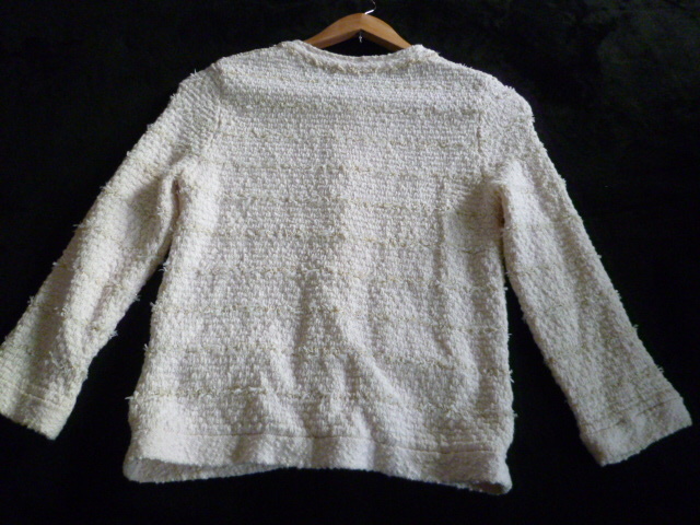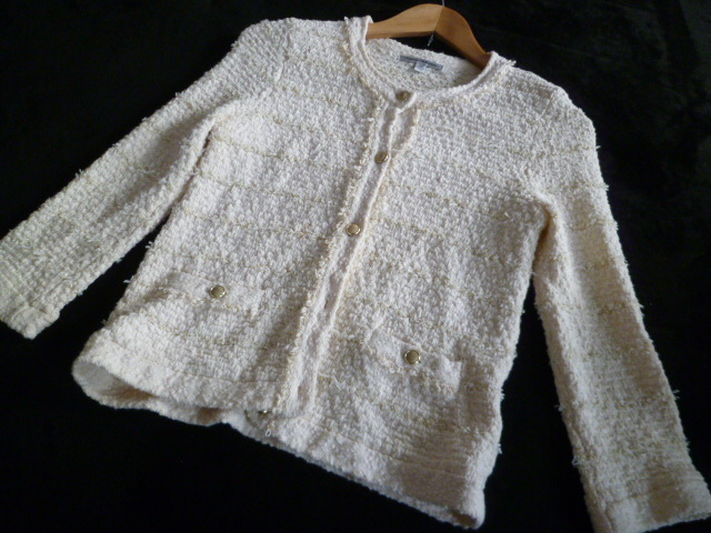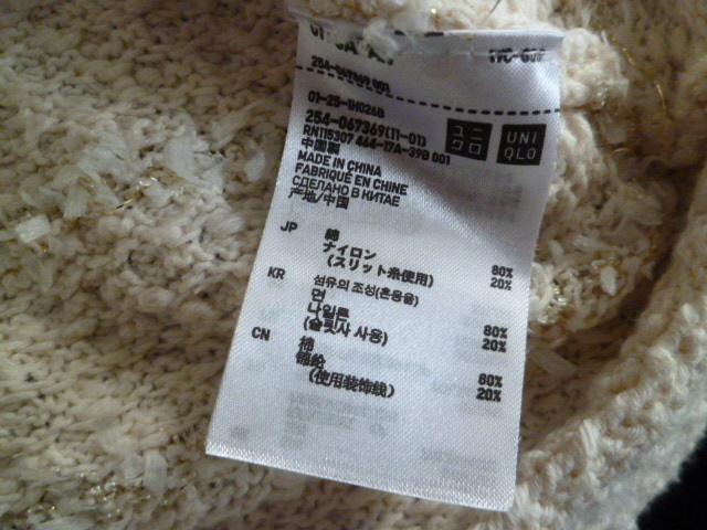 UNIQLO/ユニクロ○オフホワイト白ゴールドラメボーダーコットンニットカーディガンM○NT1124②
