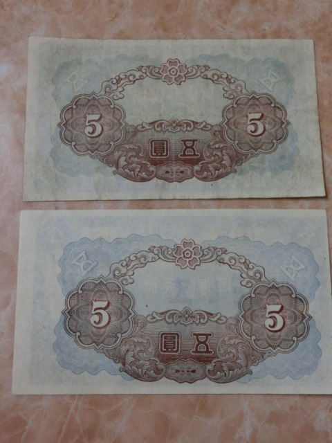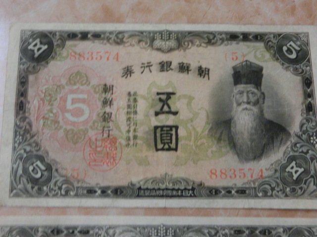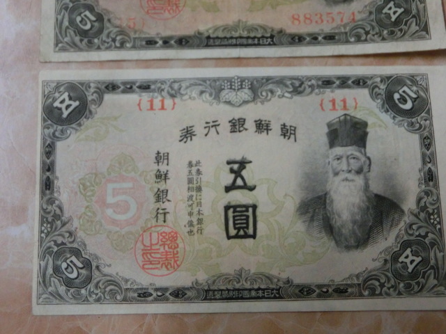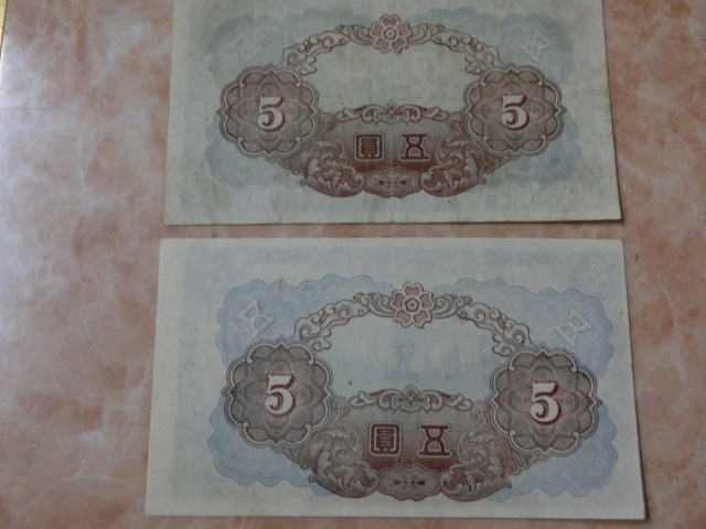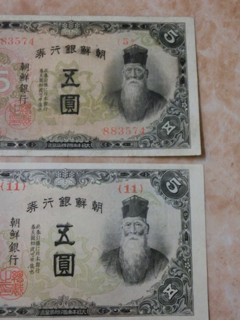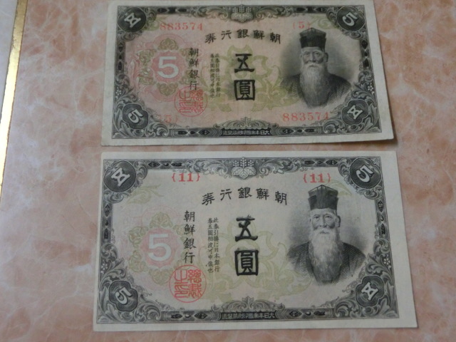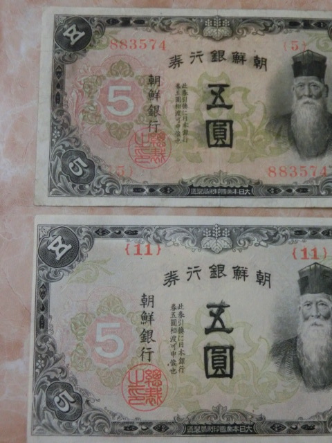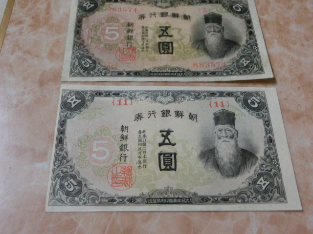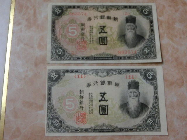 ★ 朝鮮銀行券 朝甲5円券 番号有り・番号なし 2種2枚セット 極美品 ★ No.5