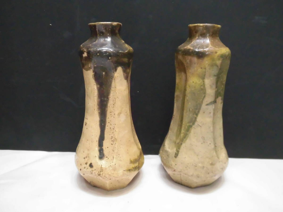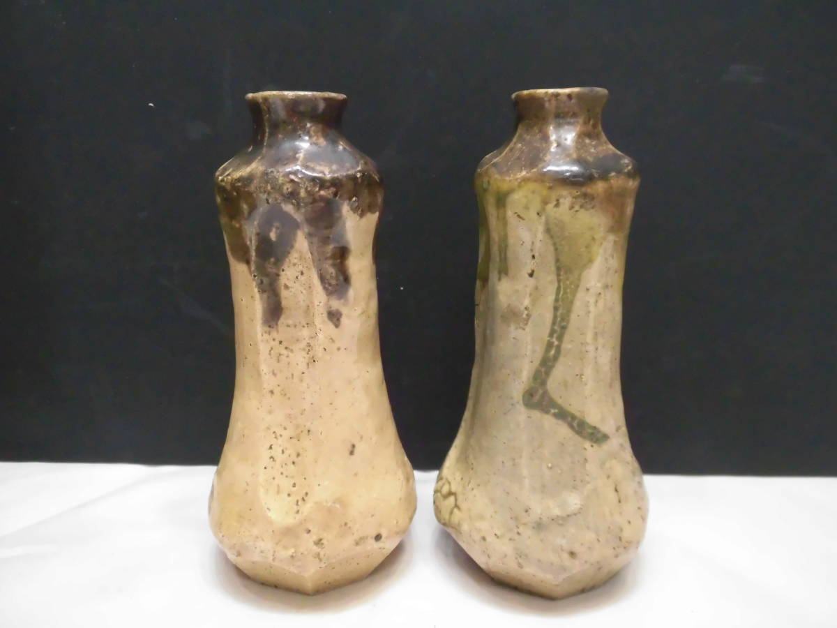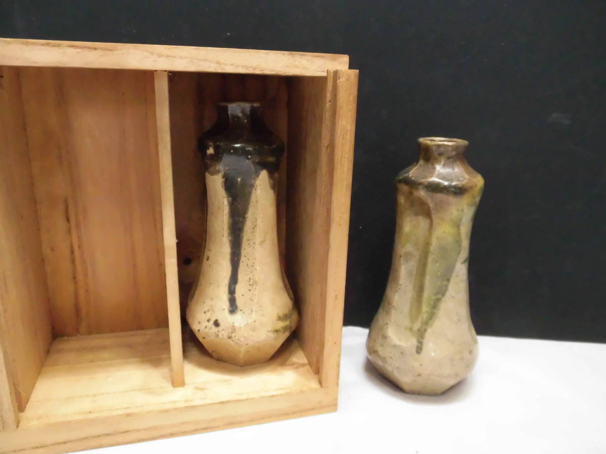 織部焼(銘あり)酒徳利=1輪差しにもよい=1セット=桐箱付、インテリア、キッチン、食器、茶器、湯飲み、単品