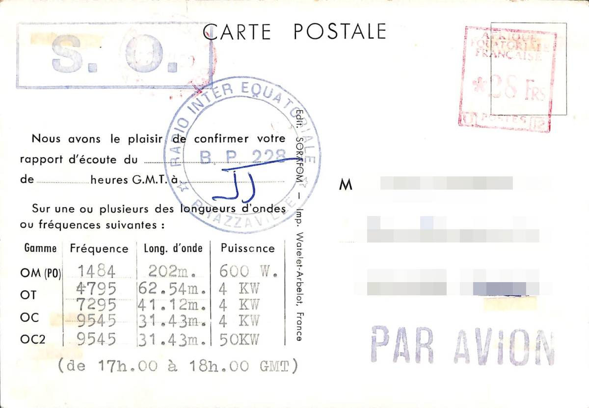 | 【商品名】・・・RADIO-A・E・F(★ラジオ・ブラザビル)のベリカード。 【コメント】・・・当時のBCL雑誌で紹介された大変有名なベリカードです! ■当方、1枚のみ所有していますので即決で落札者様のコレクションになります! 【国名・地名】・・・コンゴ共和国★首都 ブラザビル。 【受信データ】・・・1959年7月22日・SW9545KHZを受信。 【記載事項】・・・受信データ・受信者の住所・氏名が記載。 【状態】・・・シワ、汚れ、シミ、焼け、色あせ等があります。 ■カードの状態は★画像を参考に判断して下さい。 ■この機会にぜひこのベリカードを貴方のBCLコレクションに加えて下さい! | |