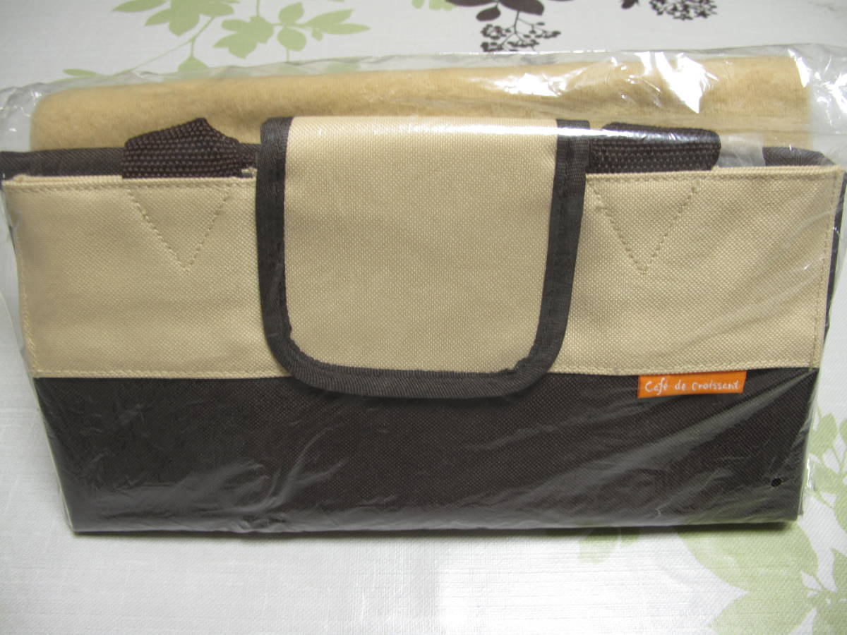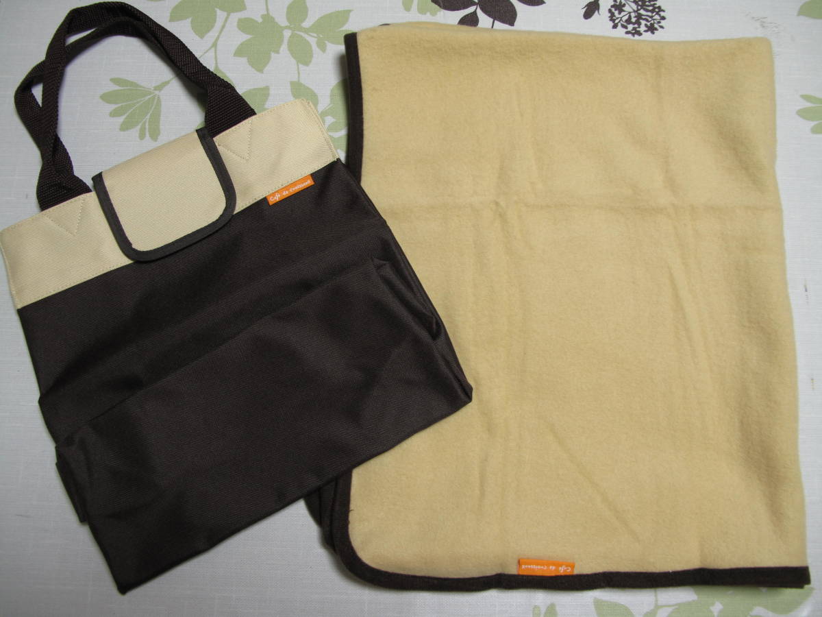 新品 2点セット カフェドゥクロワッサン バッグ 内面コーティング ベージュ フリースブランケット 約71×86cm