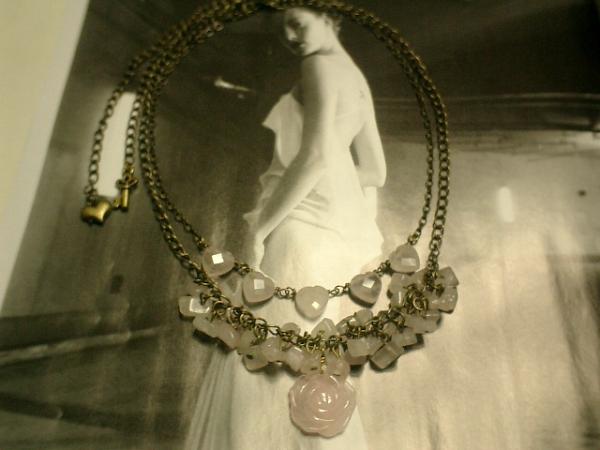 淡いピンクのローズクォーツの薔薇とハートのネックレス、2本セットです♪お揃いで着けて頂きたいので2本セットです♪薔薇は19ミリで大きめのさざれと合わせました♪長さは全長52センチで調節出来ます♪ローズクォーツのハートは10ミリで繊細なチェーンと合わせました♪37センチ+アジャスター14センチで最長51センチです♪どちらもシンプルでロマンチックな雰囲気です。シンプルで長く着けていただけるデザインです♪ハンドメイドをご理解頂いてノーリターン、ノークレームでお願いします!