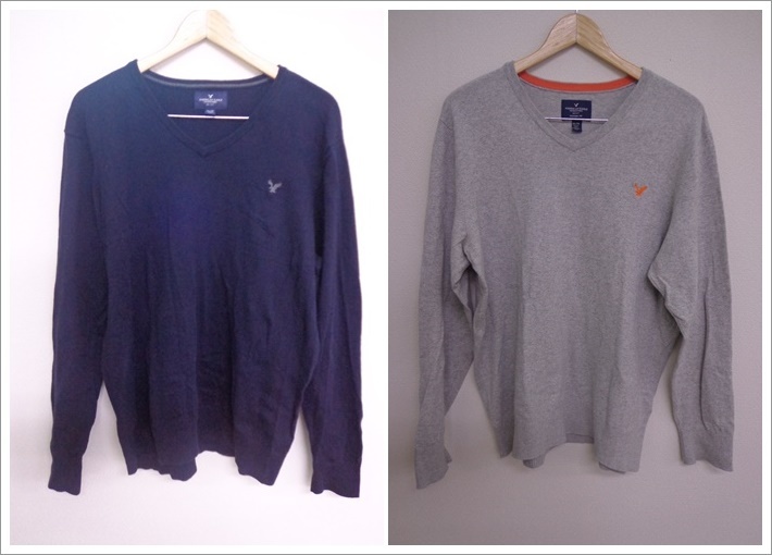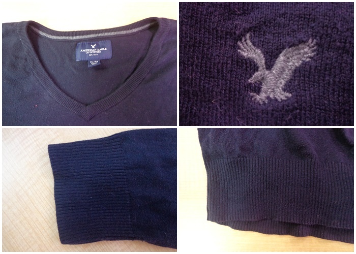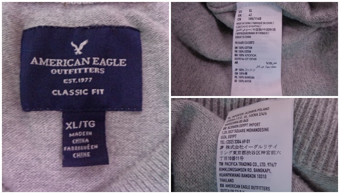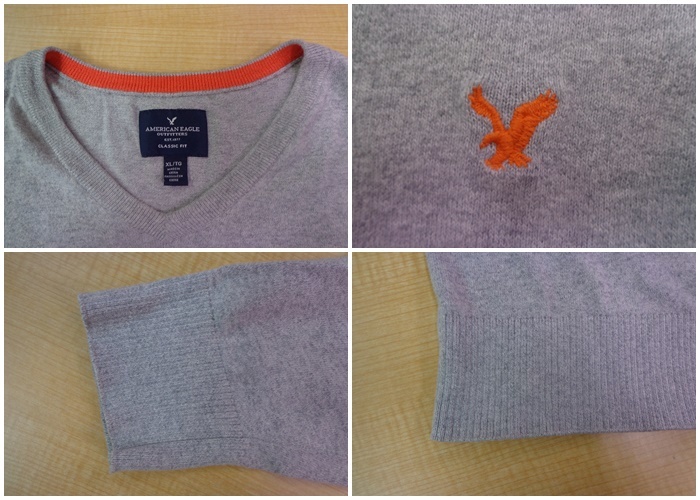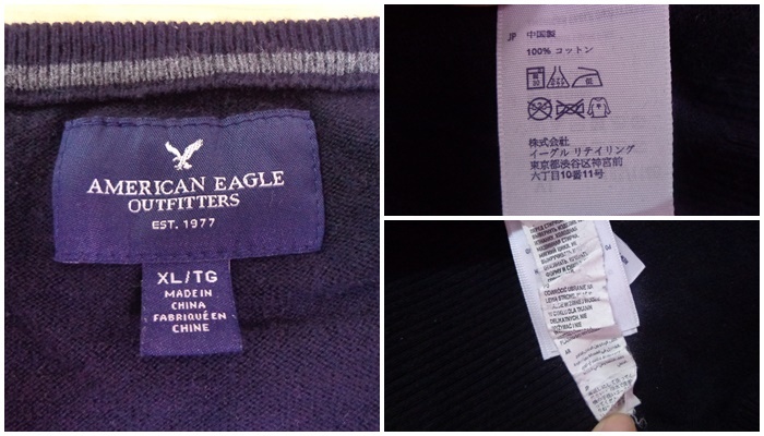☆1682【送料無料】AMERICAN EAGLE アメリカンイーグル メンズ 長袖 Vネック コットンニット セーター 2点 XL ネイビー 杢グレー ロゴ刺繍