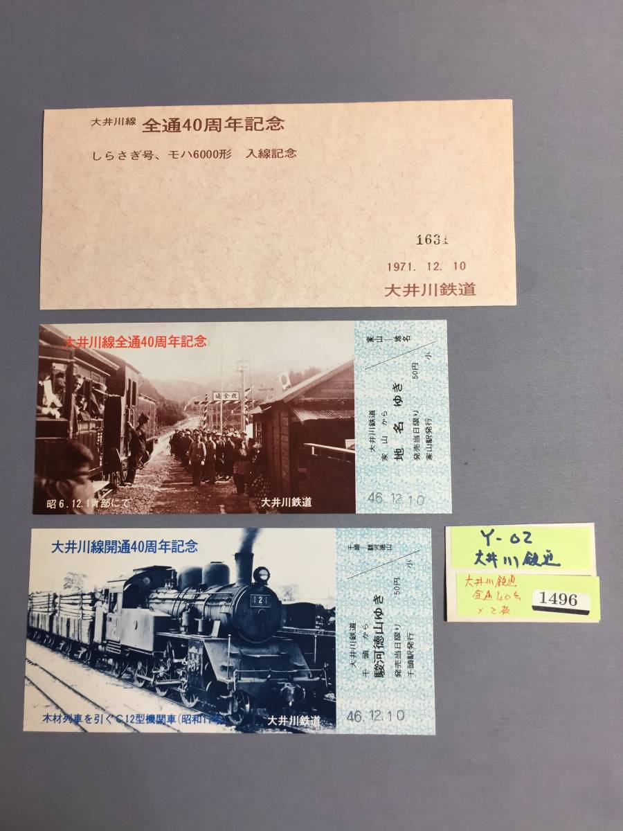 大井川鉄道 1971.12.10 大井川線全線40周年記念(しらさぎ号・モハ6000形入線記念)未使用乗車券2枚 【Y02-1496】