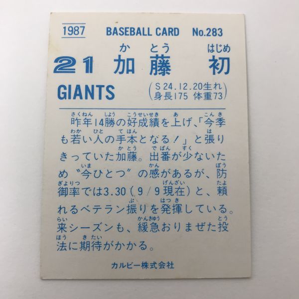 1987年 カルビー プロ野球カード 283番 巨人 加藤 87年   【管理NO:202-26】