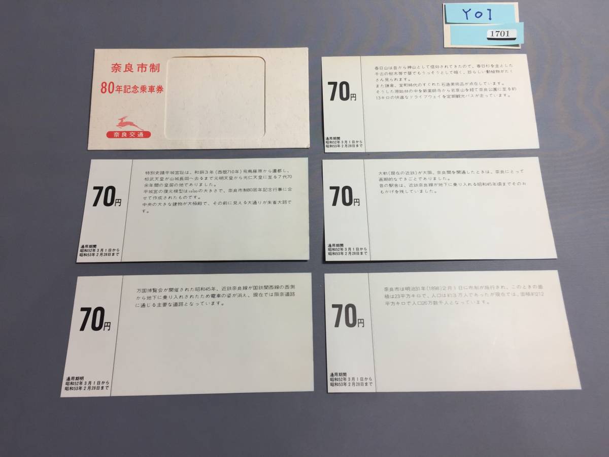 奈良交通 奈良市制80年記念乗車券 昭和52年 記念乗車券5枚 【Y01-1701】