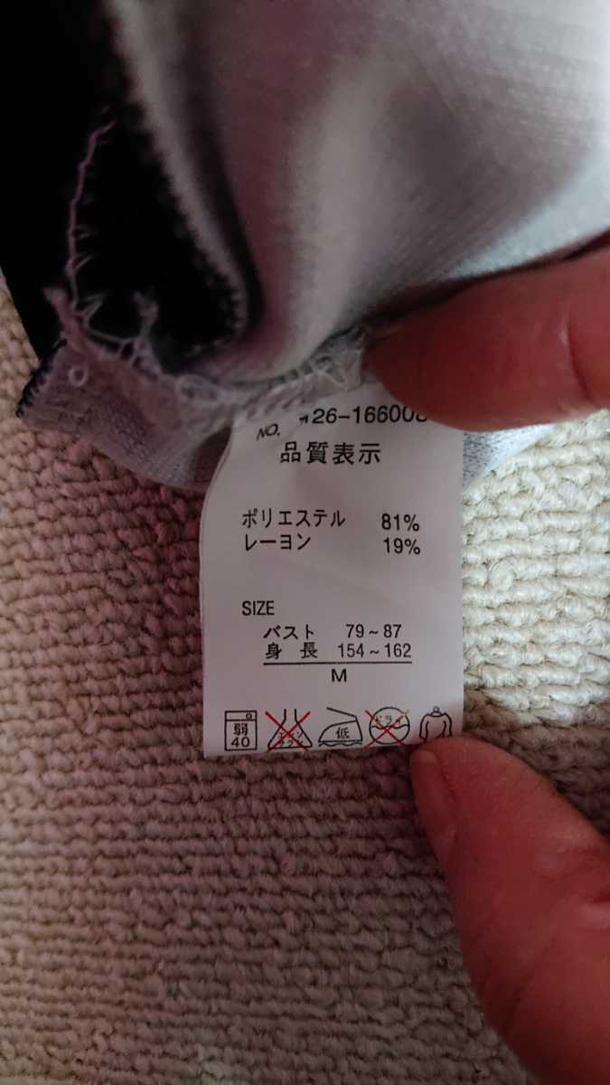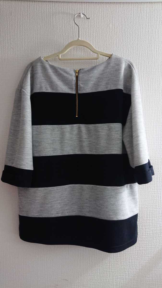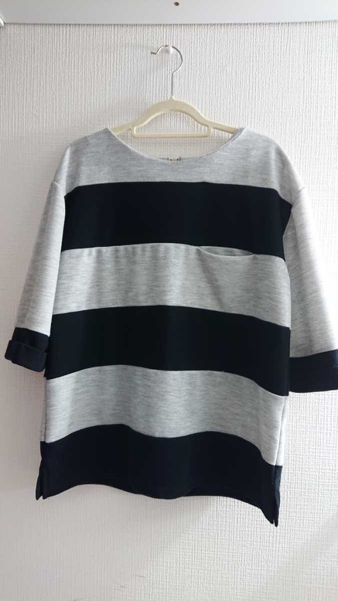 7分袖カットソー グレーネイビー系 ボーダー サイズM
