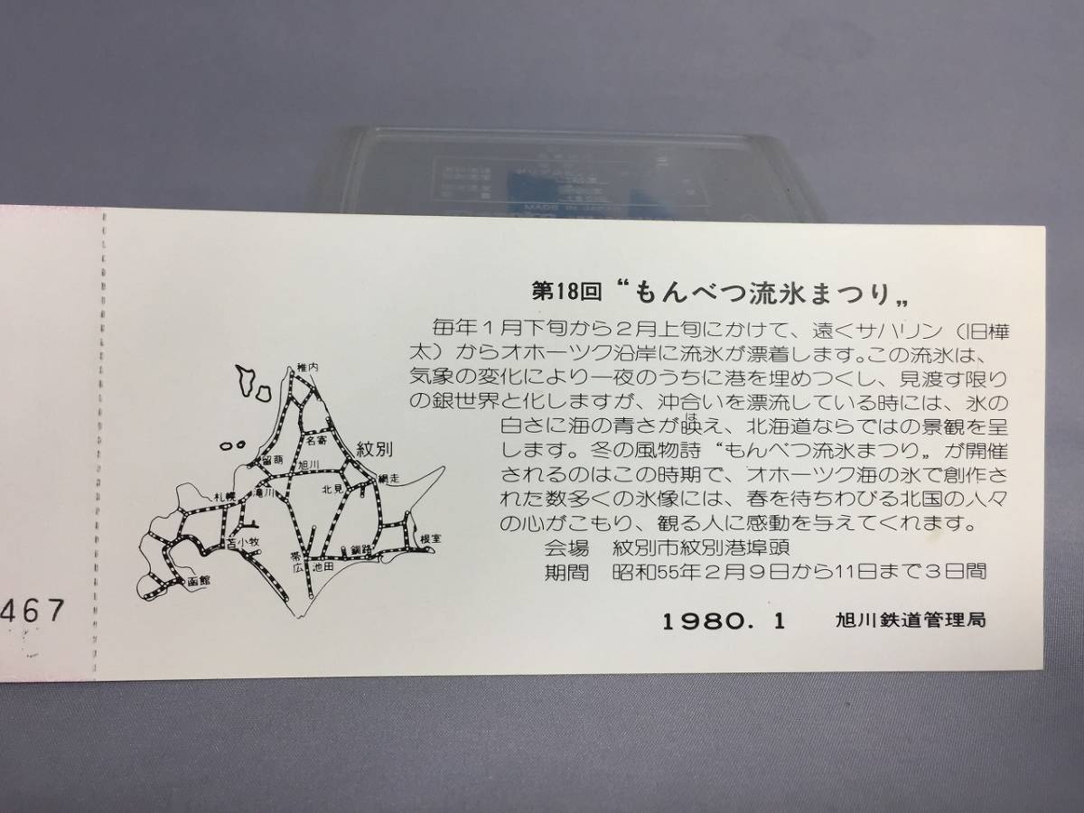 国鉄・旭川鉄道管理局 昭和55年1月20日 北国の冬の祭典第18回もんべつ流氷まつり記念急行券 1枚【k17-010】