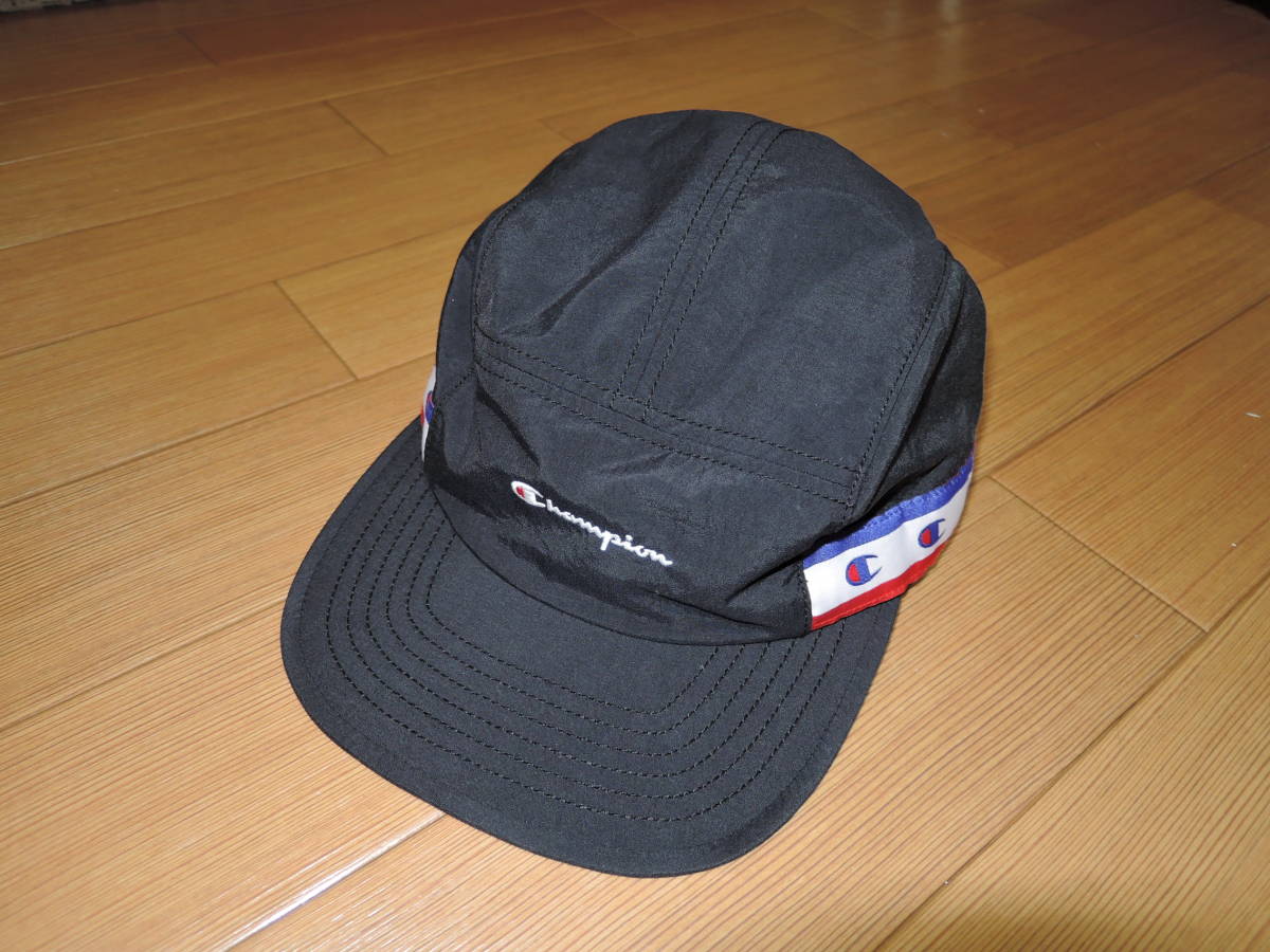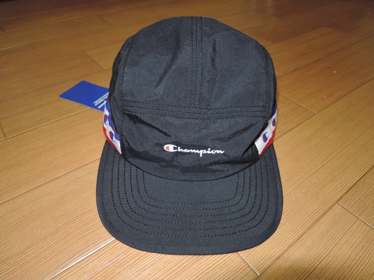 新品 Champion チャンピオン 5Pキャップ 黒 ロゴ ナイロン