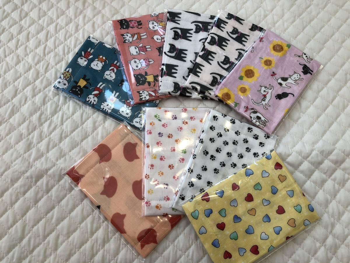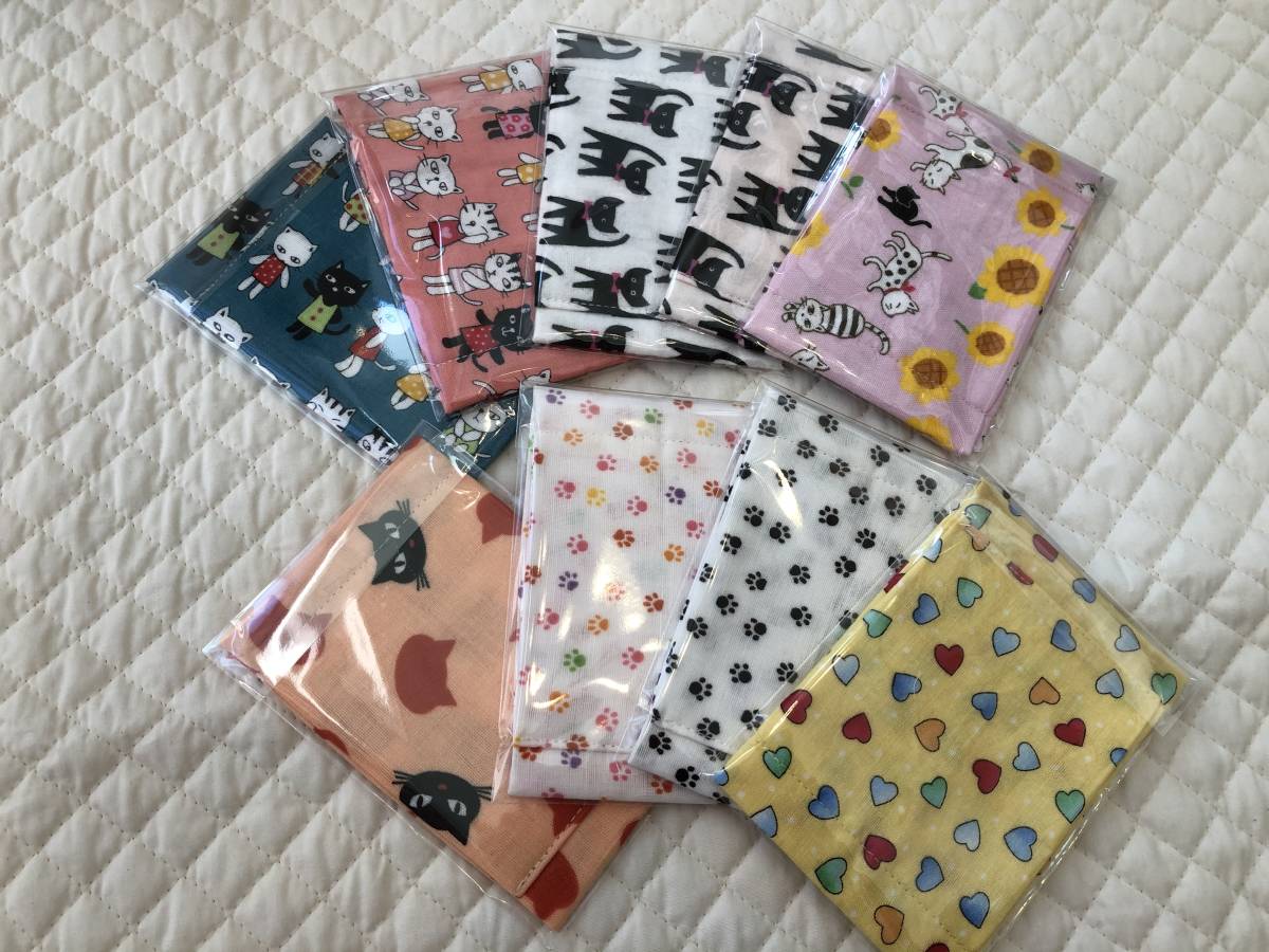 インナーマスク(十二重)猫、肉球、ハート9枚セット ハンドメイド