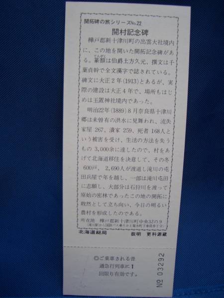 | ■【北海道総局】開拓碑の旅シリーズ No.22 急行券■s49 | |