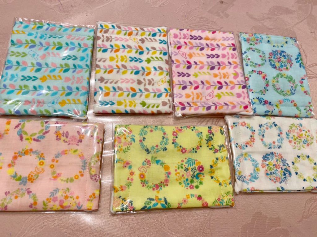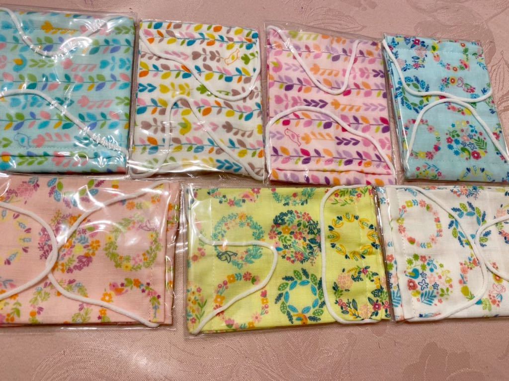 手作りのガーゼインナーマスク 小学校低学年用サイズ7枚組になります。サイドにゴムを通す部分があります。