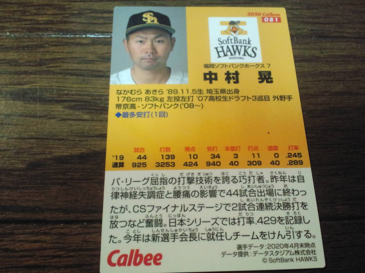[同梱可]★中村晃(福岡ソフトバンクホークス)★レギュラーカード(081)☆2020年カルビープロ野球カード第2弾