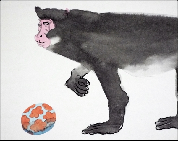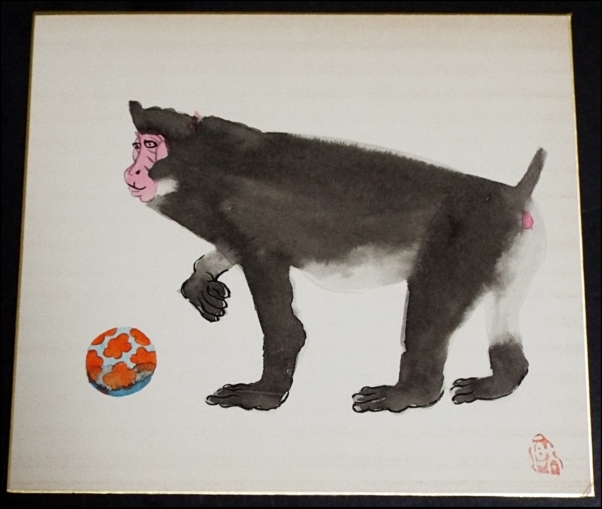 5349☆☆真作・肉筆色紙・福田恒太・猿画・洋画家・版画家・栃木☆