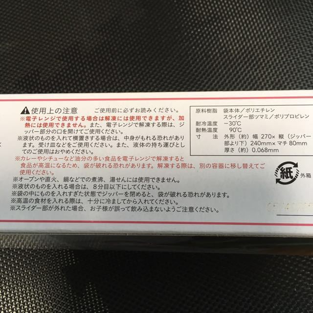 底にマチがあり、スライダー付きで出し入れしやすいです。 ビニールの厚さも0.068としっかりした袋です。 箱から出して発送いたします。 本製品は食品衛生法の規格に適合しております。 2点以上ご落札の場合、2点目以降はクリックポストでの発送になりますので、取引ナビより住所、郵便番号、氏名のご連絡をお願いいたします。 2点目も匿名発送ご希望の場合は1点ずつご落札下さい。 よろしくお願いいたします。 自宅にペット、喫煙者はおりません。 他の出品商品との同梱はお安い発送方法を選びますので、質問よりお問い合わせください。 | ||||||||