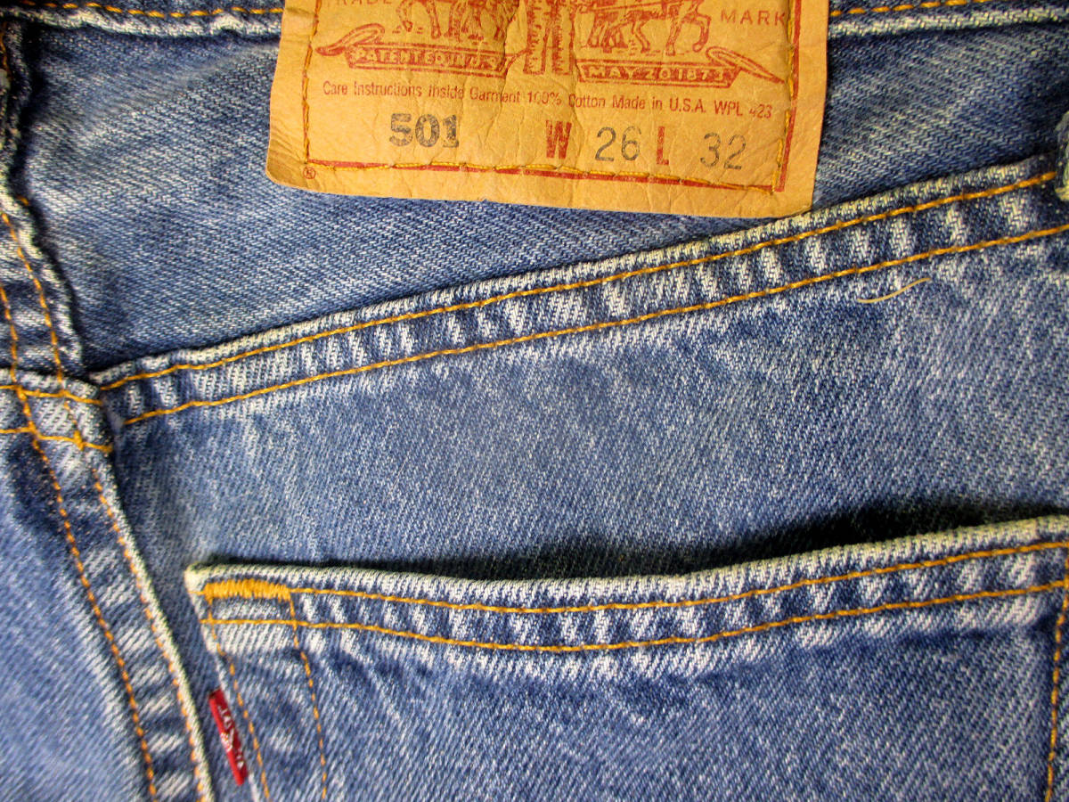 90's ビンテージ Levi's リーバイス ひざ丈 リメイク デニムスカート W26 USA製 lbsk-7