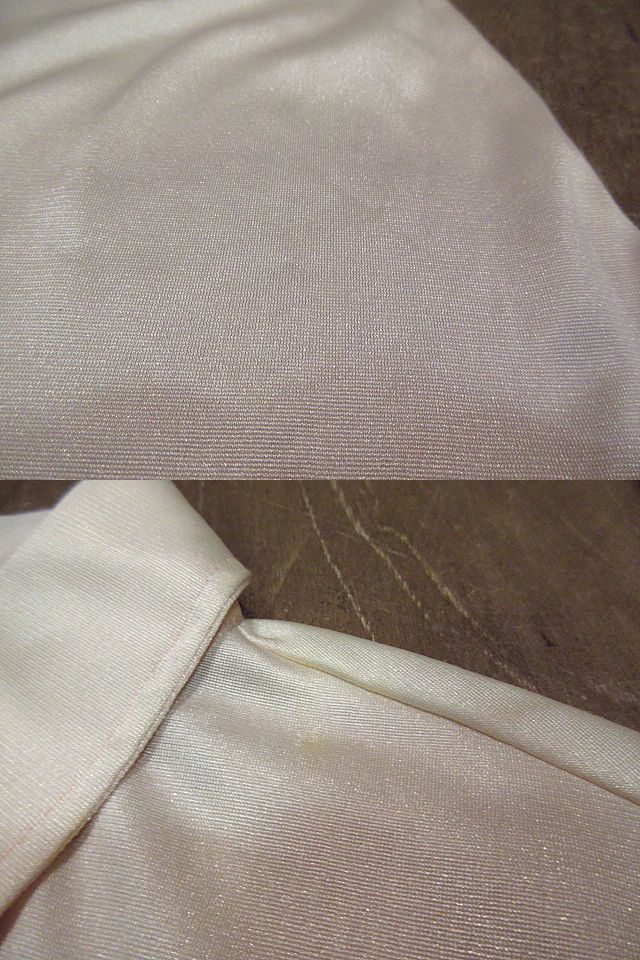 | 静岡県富士市にあるCOZY VINTAGEです。 海外から直接仕入れた古着、雑貨などを扱っています。 ホームページもございますので、そちらもチェックしてみてください。 https://www.used-cozy.com こちらの商品は佐川急便元払い60サイズです。 ◆サイズ◆ 表記・・・13/14 肩幅・・・約42cm 身幅・・・約51cm 袖丈・・・約59.5cm 着丈・・・約62cm (計測箇所によって多少異なりますのでだいたいの目安としてお考えください。) ◆状態◆ 首周りに汚れがあります。 両脇に薄い汚れがあります。 ところどころに細かい汚れや擦れがあります。 ダメージ、汚れが気になる方、神経質の方はご遠慮下さい。 ◆商品詳細◆ MADE IN ITALYです。 素材は、ナイロン100%です。 光沢のある薄手のニット地です。 色は、薄いベージュに近い色合いです。 ボタンやステッチの色は、ピンクです。 袖先にボタンが1つずつ付いています。 学校の風景がプリントされた素敵なデザインのシャツです。 1970年代スタイルがお好きな方に特にオススメです。 200906n1-w-lssh オークションID 「used_cozy」 「vintage_0313」 「cozy_vintage_japan」 にてヤフオク出品をしています。 他の商品も是非ご覧になってみてください。 ◆ビンテージ古着、レトロな雑貨などの卸もお気軽にご相談ください。 ◆info@used-cozy.comまでお気軽にメールくださいね!! |