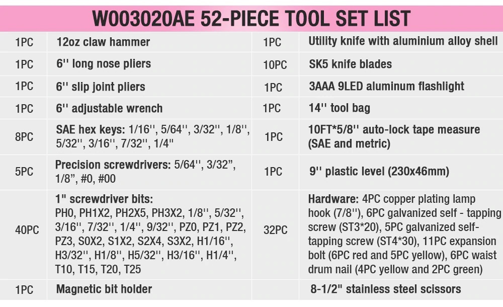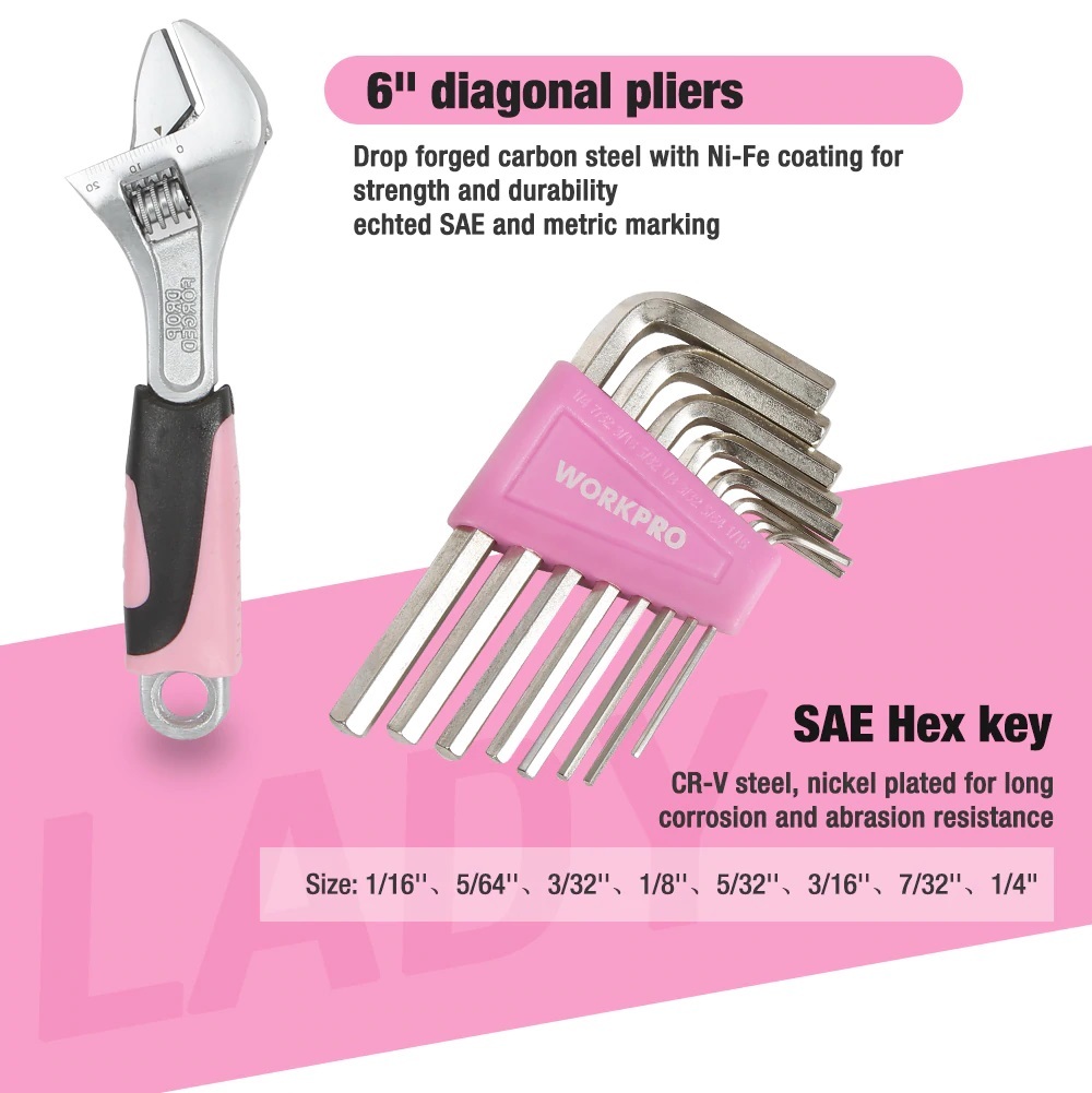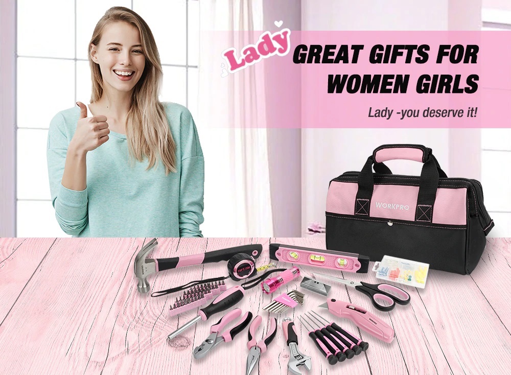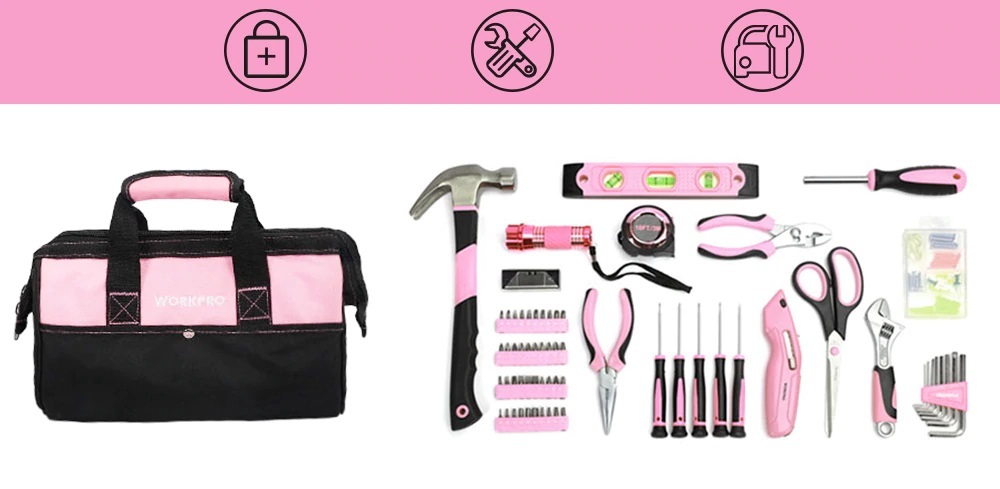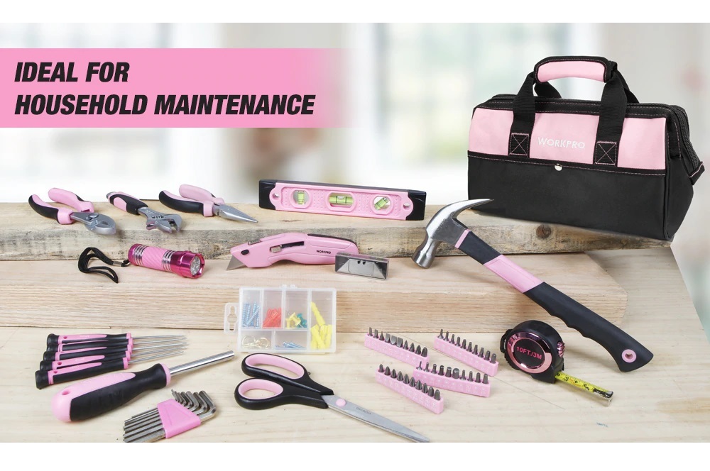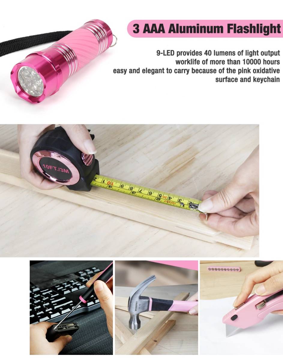 家庭用ツールセットピンクホームツール prescision ドライバーセット懐中電灯ツールバッグ  ※送料無料