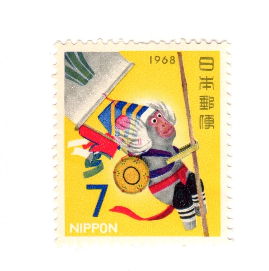 昭和42年1967「昭和43年申年用年賀切手」7円切手・未使用【送料無料】「熊五郎の切手」00800459