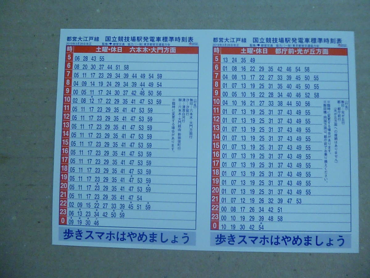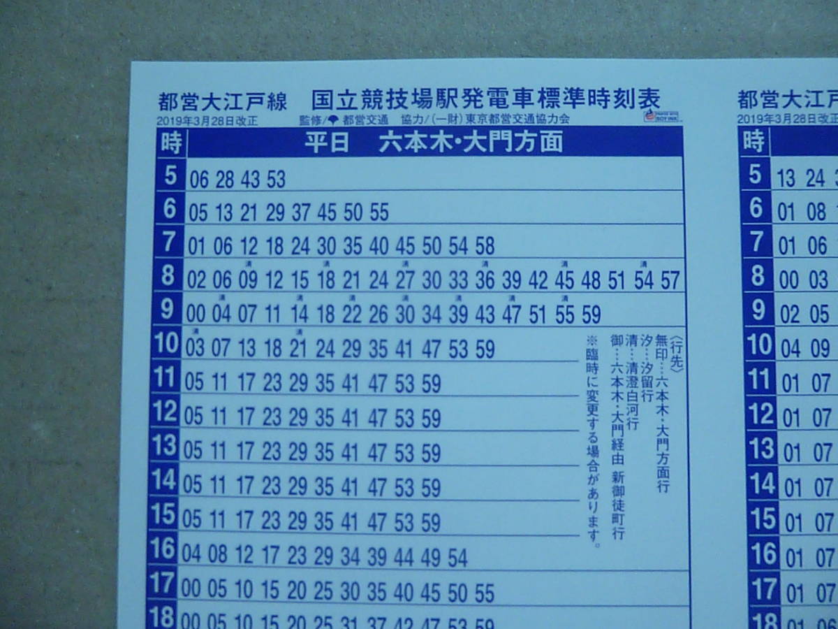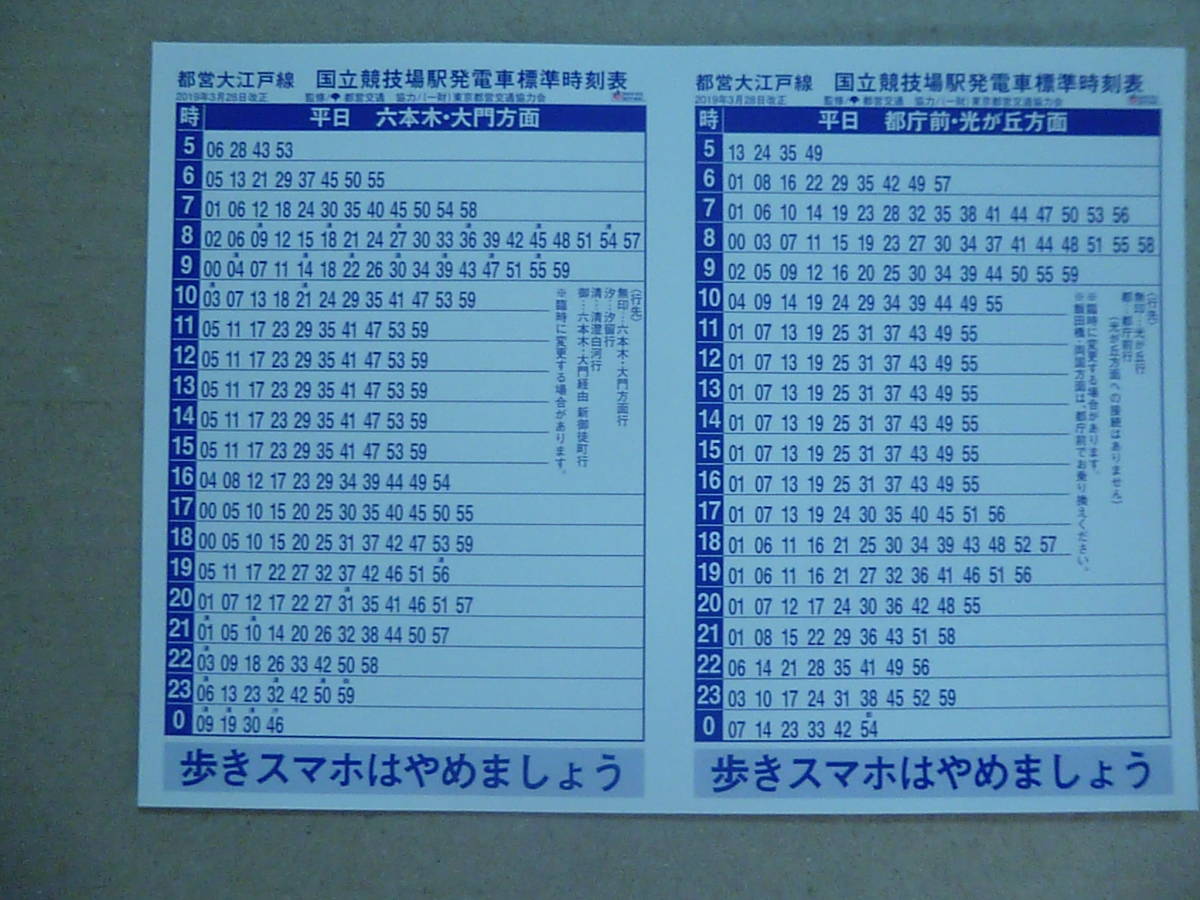 | 都営地下鉄 大江戸線 国立競技場駅 ポケット時刻表 2019/3/26 版でございます。 |