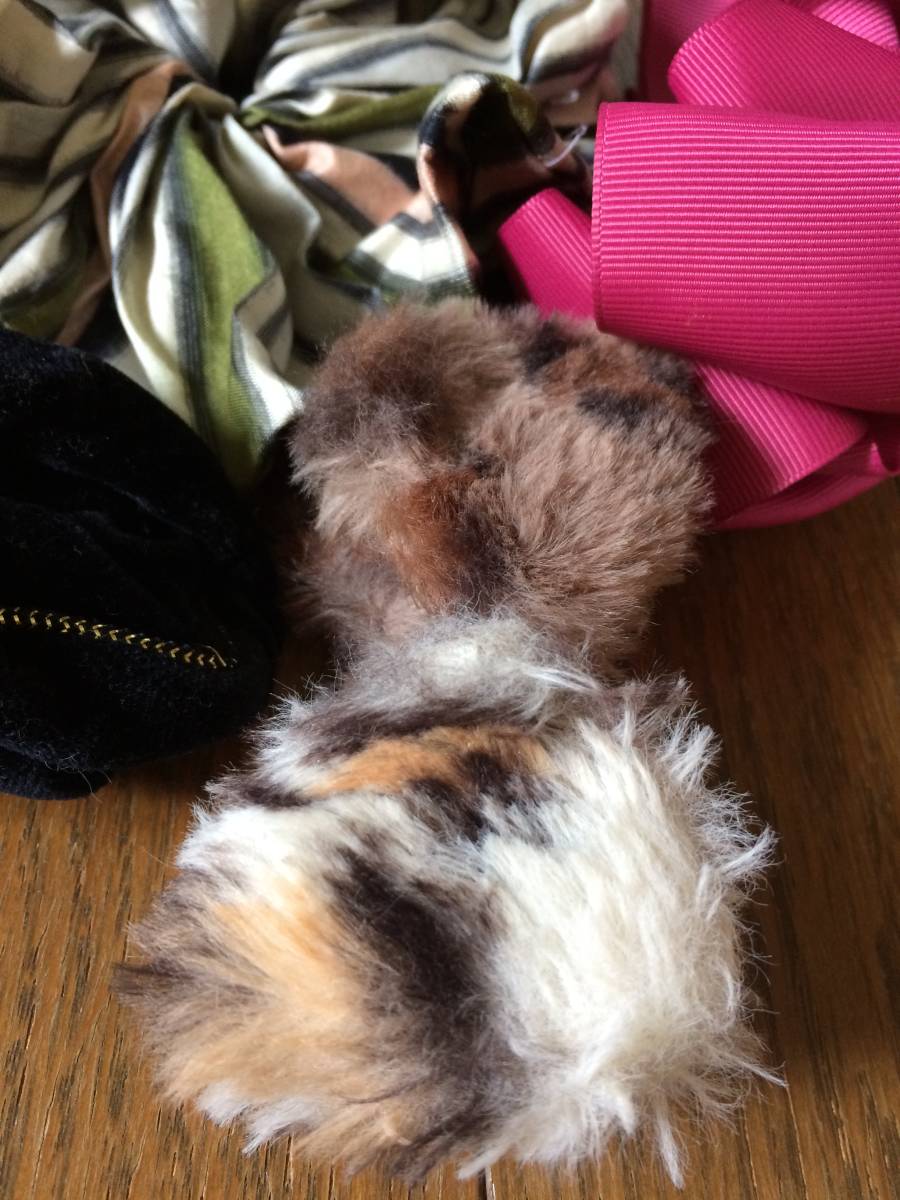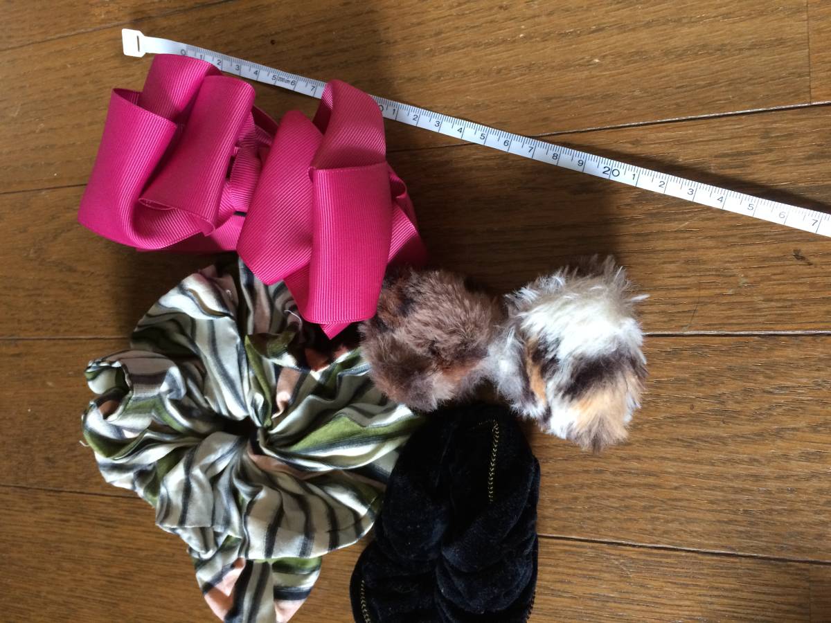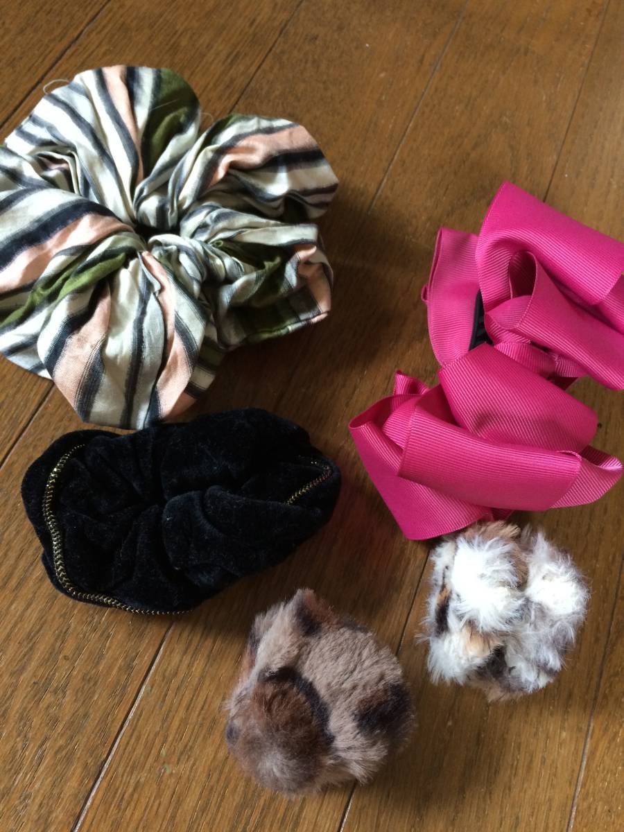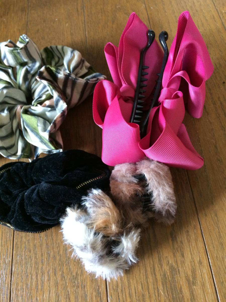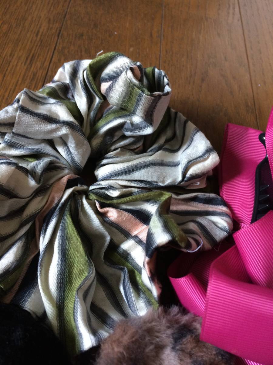 ヘアクリップ バナナクリップ シュシュ のセット 5点★ピンク ストライプ ヘアアクセサリ 髪留め