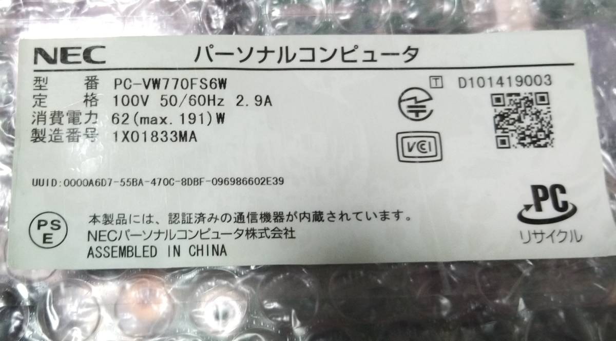 NEC VW770/FS PC-VW770FS6W PC-VW770FS6B PC-VW770FS6R PC-VW770FS6C マザーボード システムボード メインボード 正常動作品