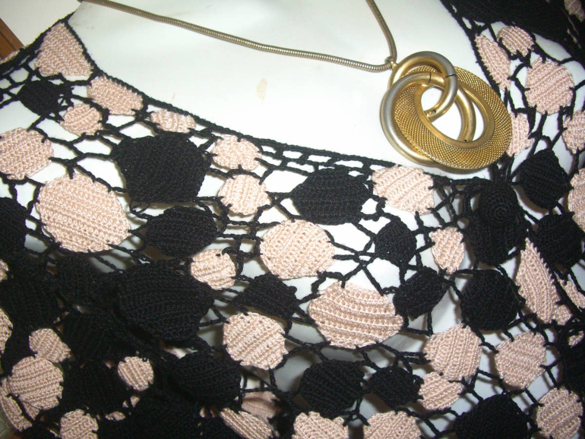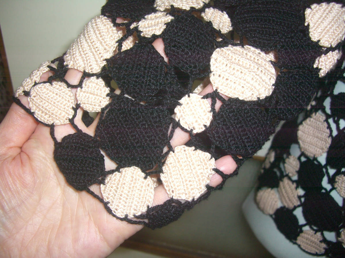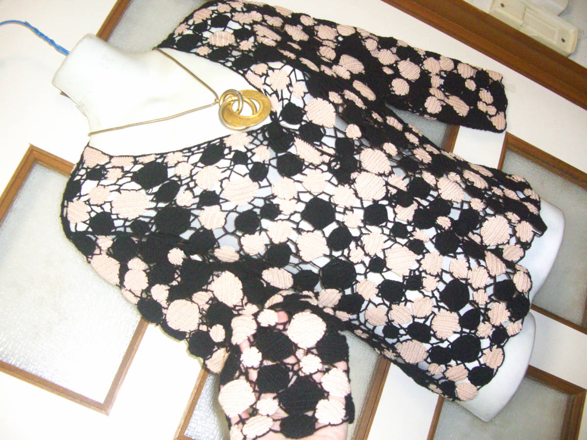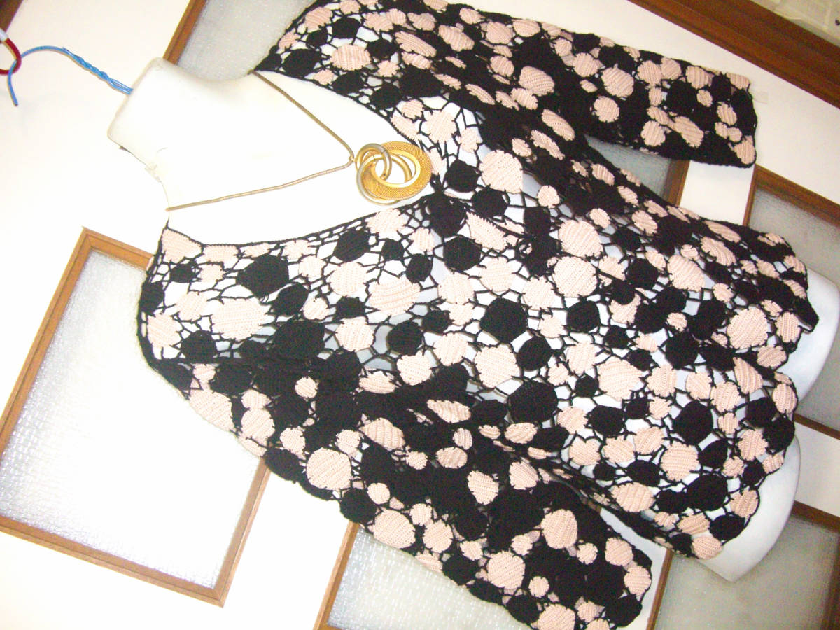 お色は黒×ピンクベージュ、細糸の変わり編みで、とても繊細でエレガントです。