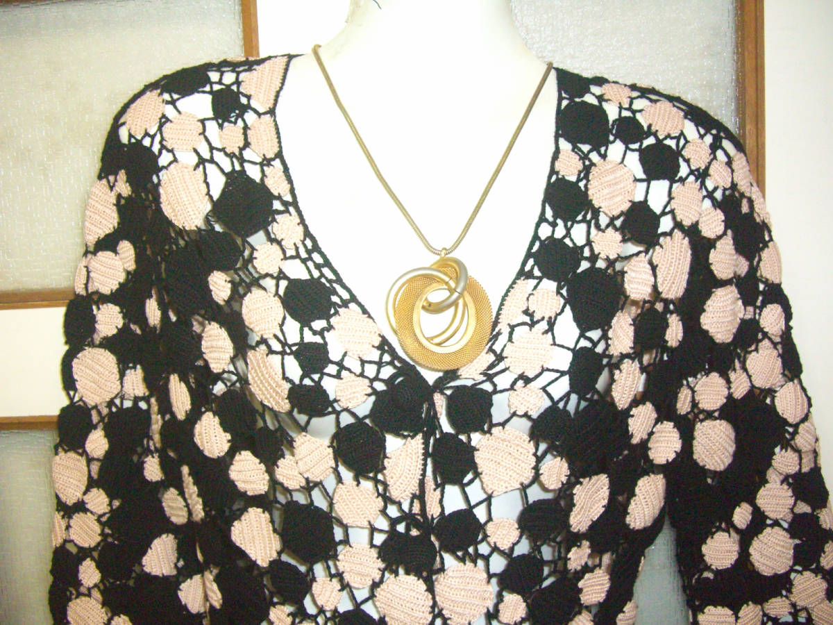 4万★シビラ★モチーフ レース編カーデガン★黒×ピンクベージュ★ボレロ 羽織物★パーティにも