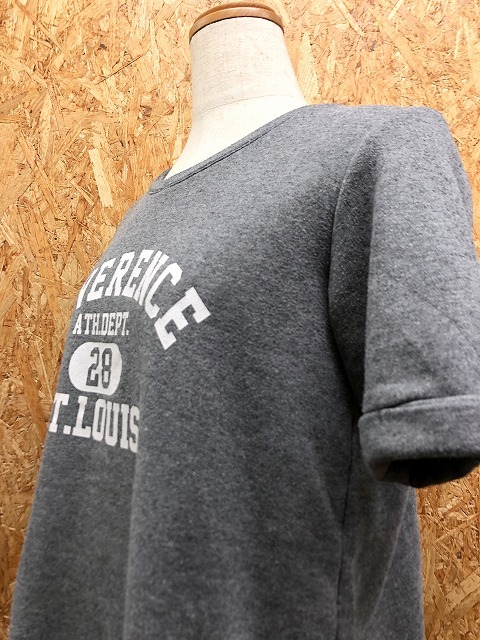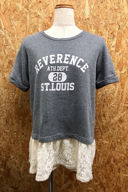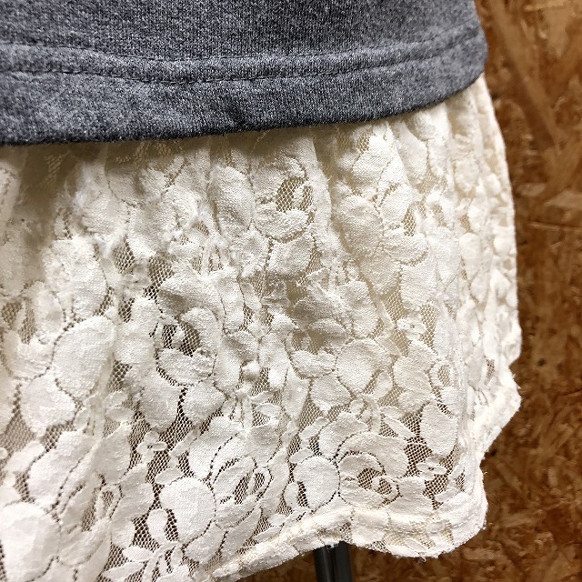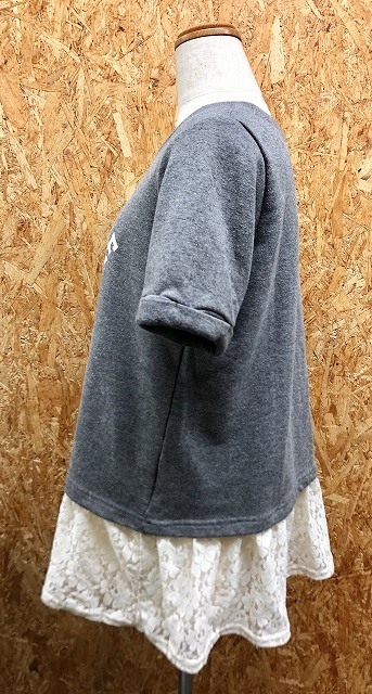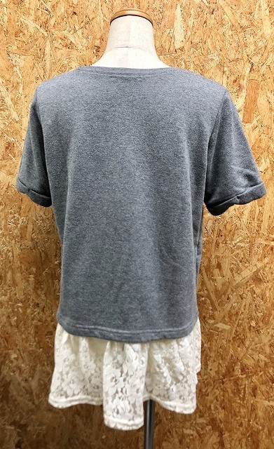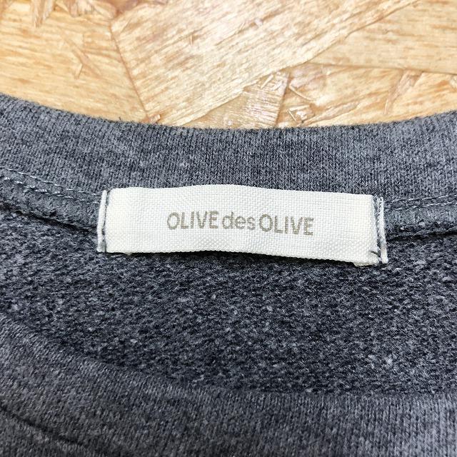 | 商品タイトル | OLIVE des OLIVE オリーブデオリーブ L レディース スウェットシャツ 裏毛 裾フリル プリント 半袖 カットソー - 杢グレー×オフホワイト |