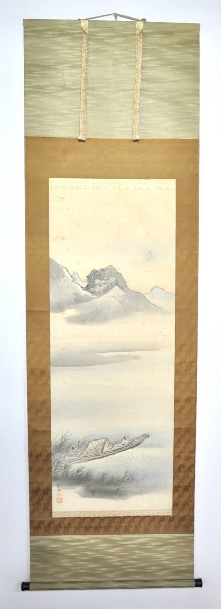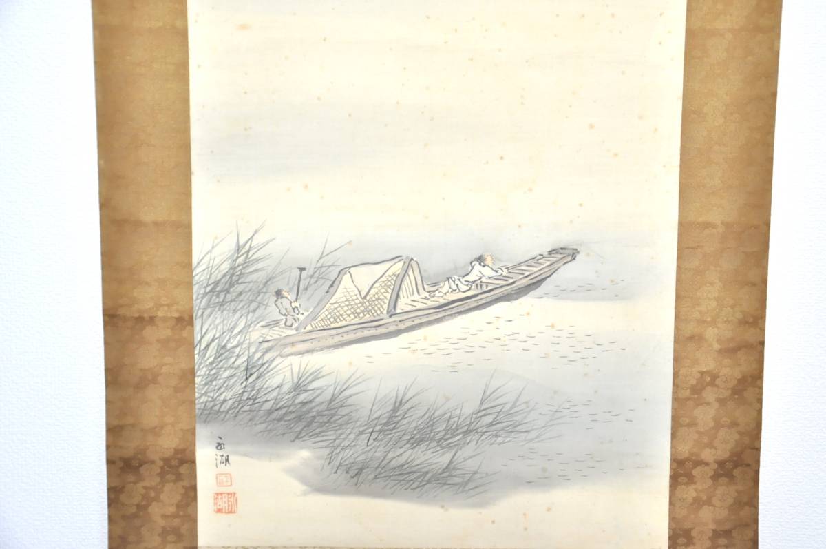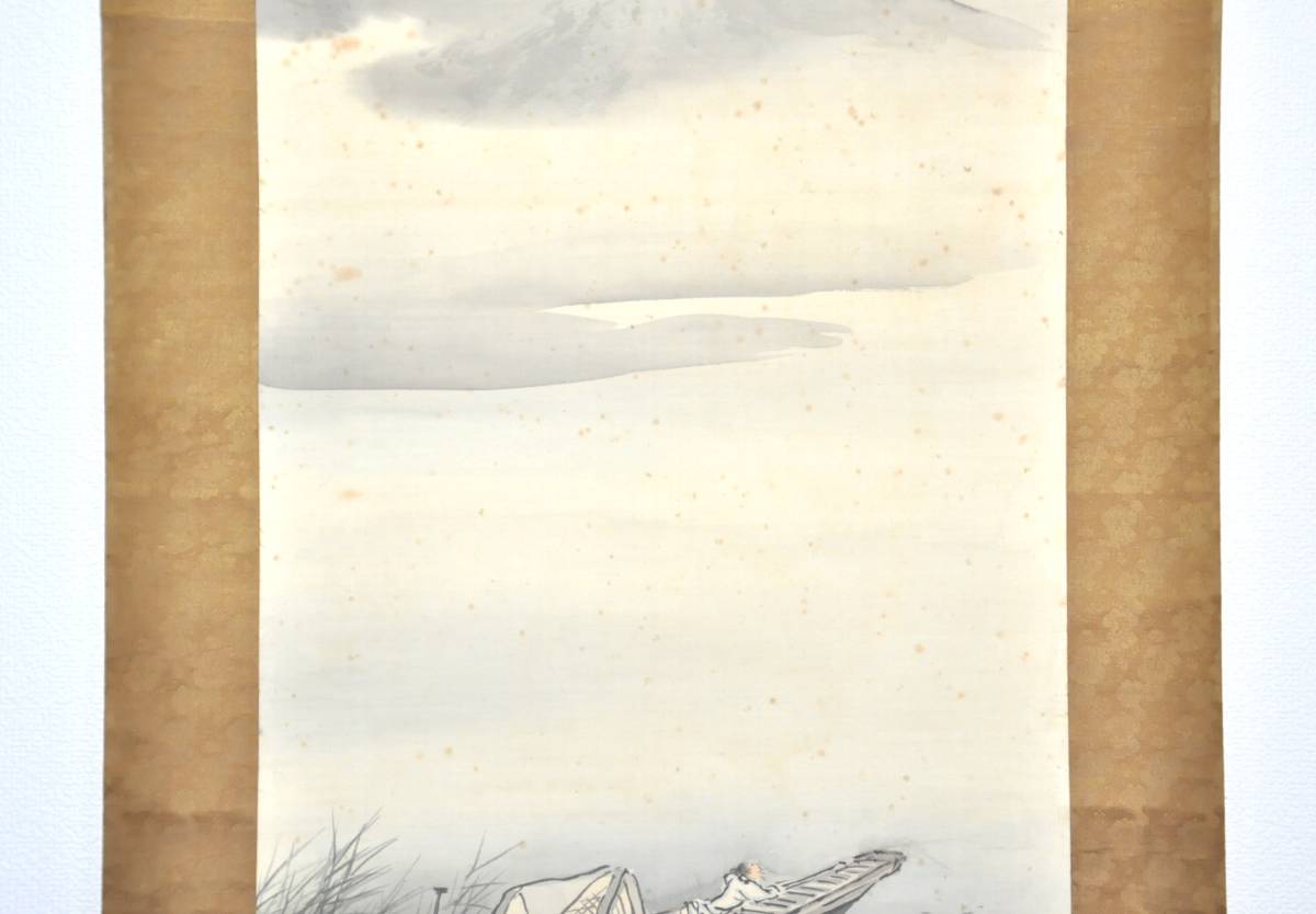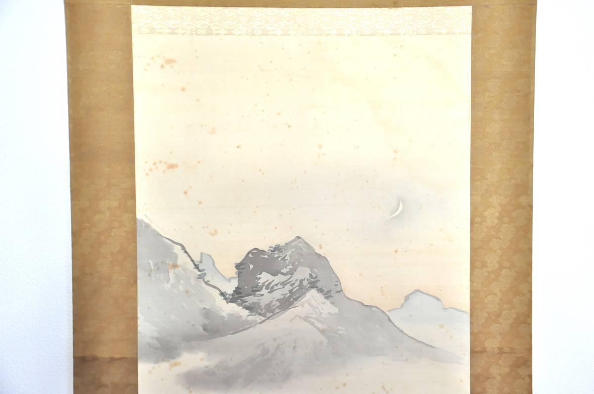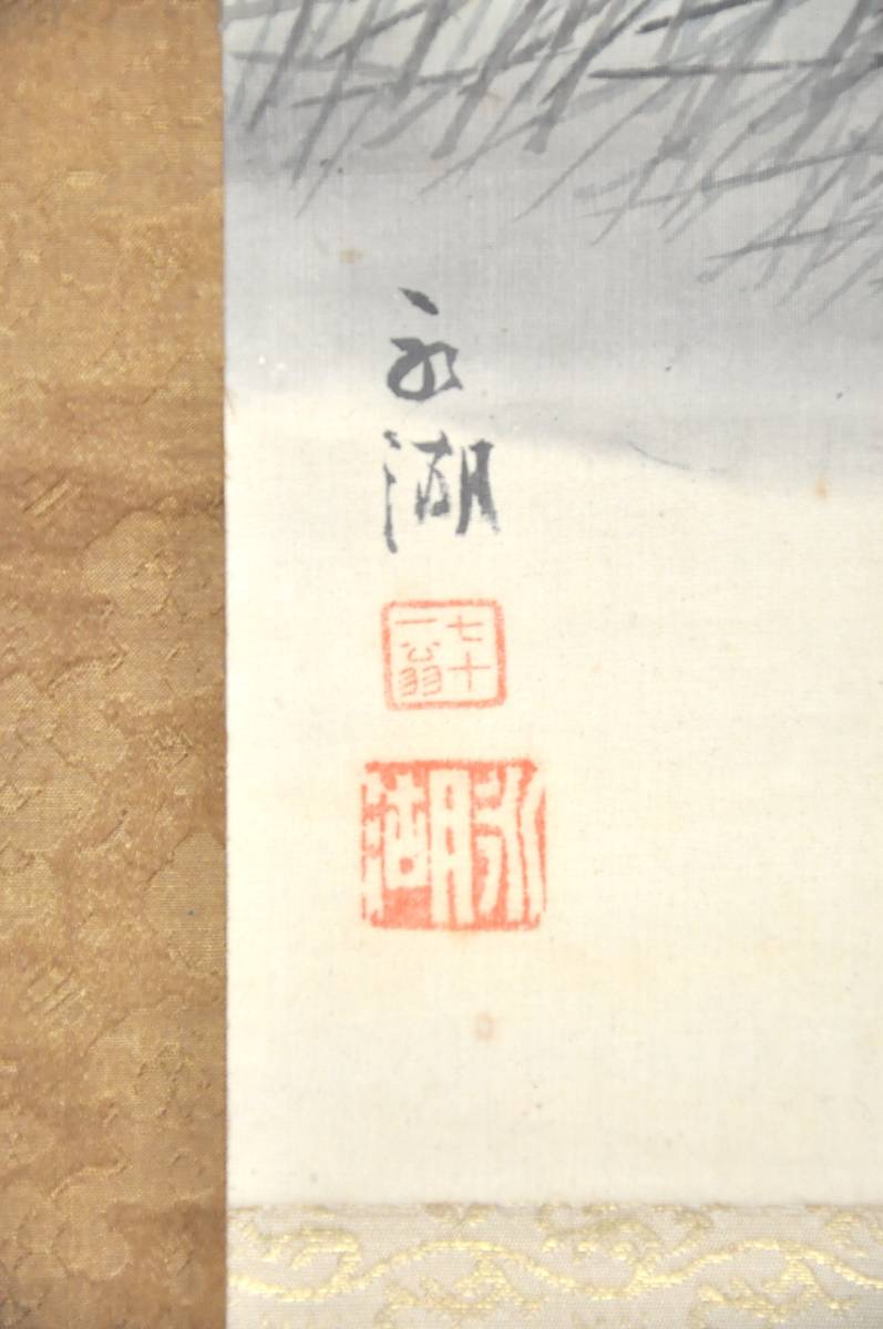経年による味わいが魅力的! 時代物 味わい明治期掛軸 永湖七十一翁在銘 ※しみが散見されます エステートセール KJK