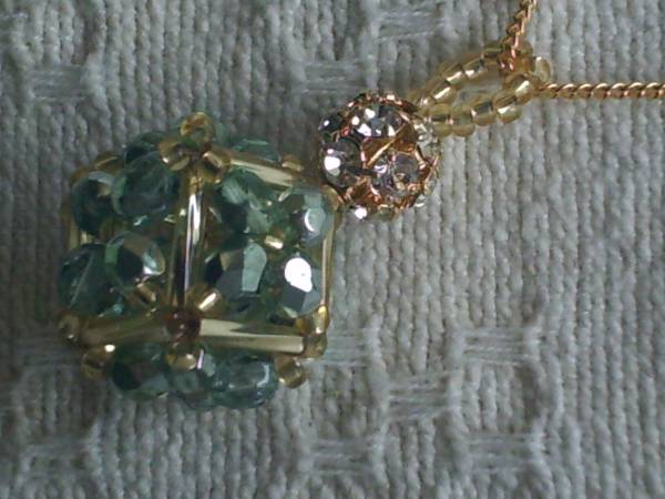 ハンドメイド、新品です。 スワロフスキークリスタルガラスの丸いくす玉パーツとファイヤーポリッシュなどを使用して作りました。 金具は金色、香水瓶部分のカラーはミラーグリーンです。 チェーンは長さ40cmです。 チャーム部分の高さが約2.5cmです。 |
